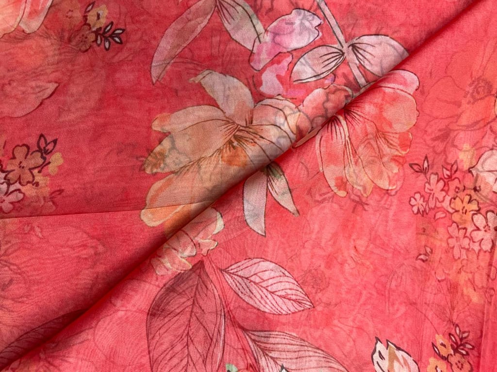 | Fabric Name | Dull Red Floral Viscose Organza Fabric |