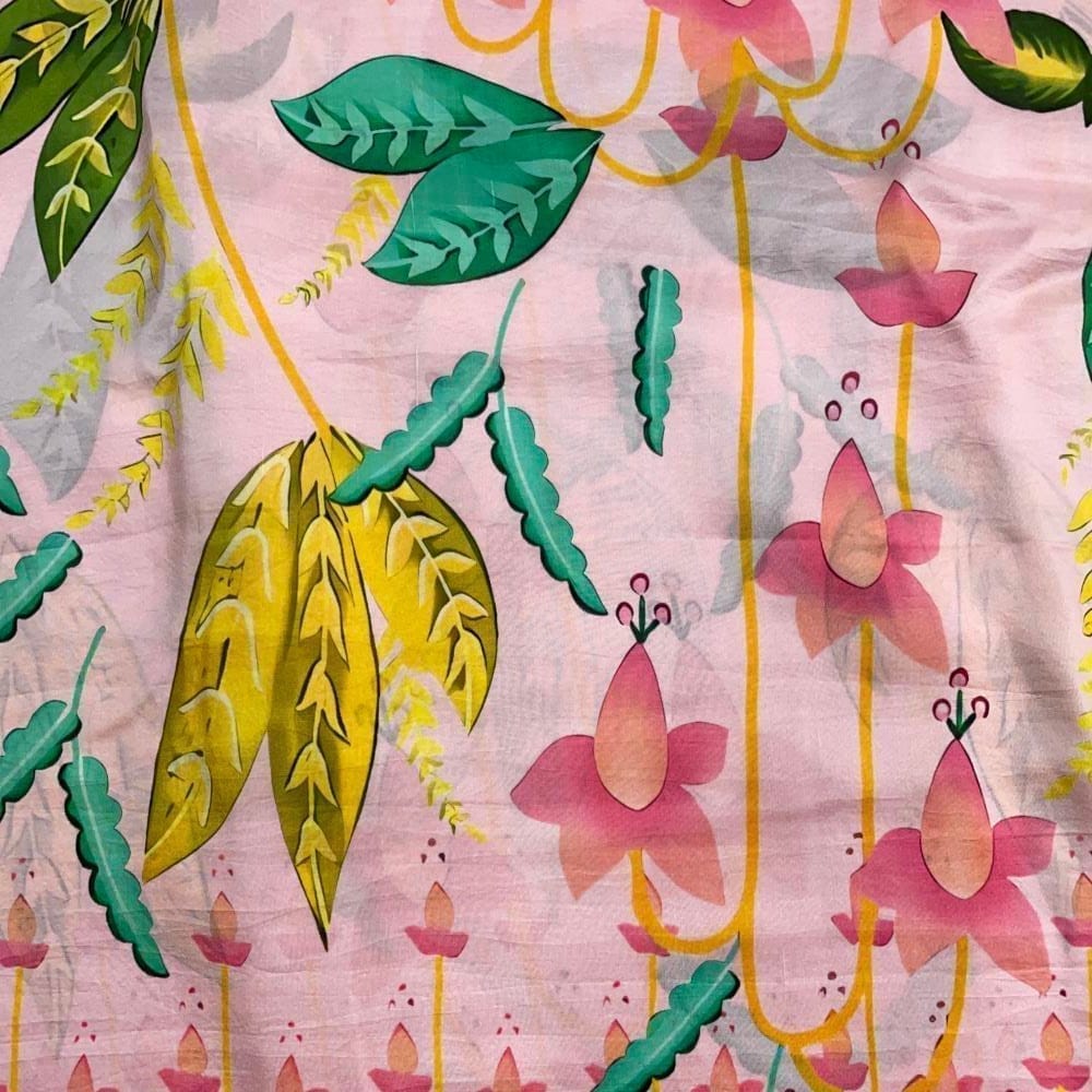 | Fabric Name | Baby Pink Color Floral Pure Dupion Silk Print Fabric |