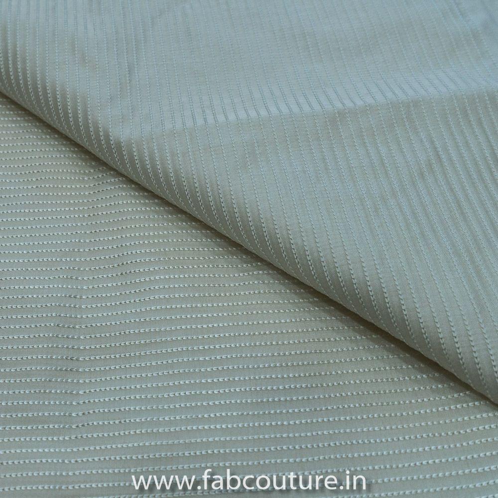 White colour Chanderi with Tread vertical Line Embroidery, Fabric Width Is 47" & Embroidry Width Is 38",Dyeable fabric, SKU: 100232815
