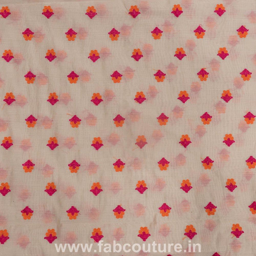 Beige color width 44" Beautiful Chanderi Embroidery with ornage and magenta booti , SKU:100181864