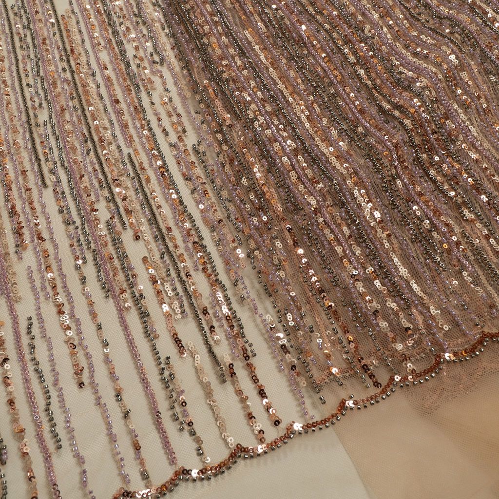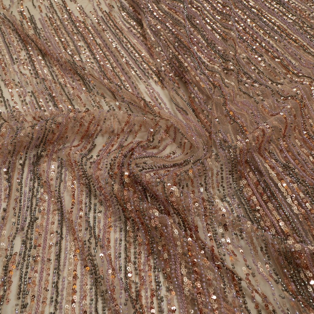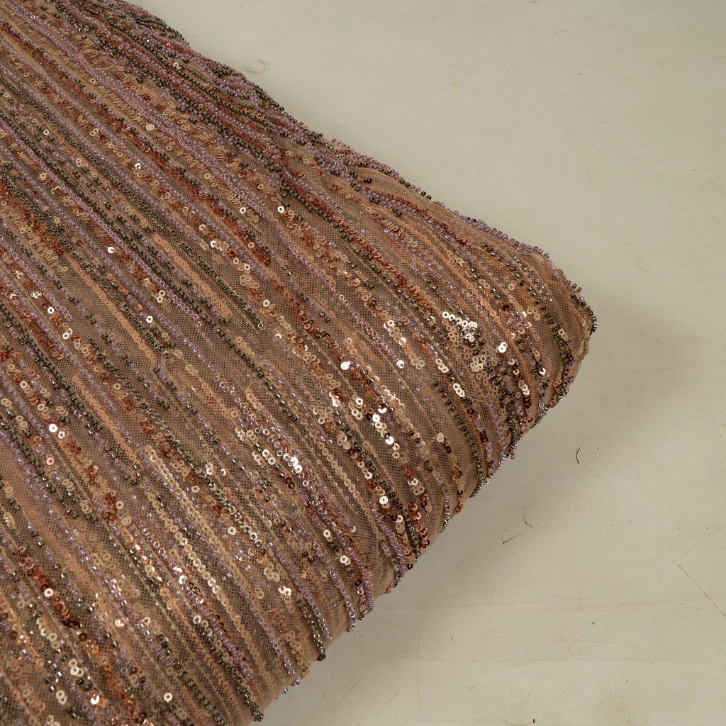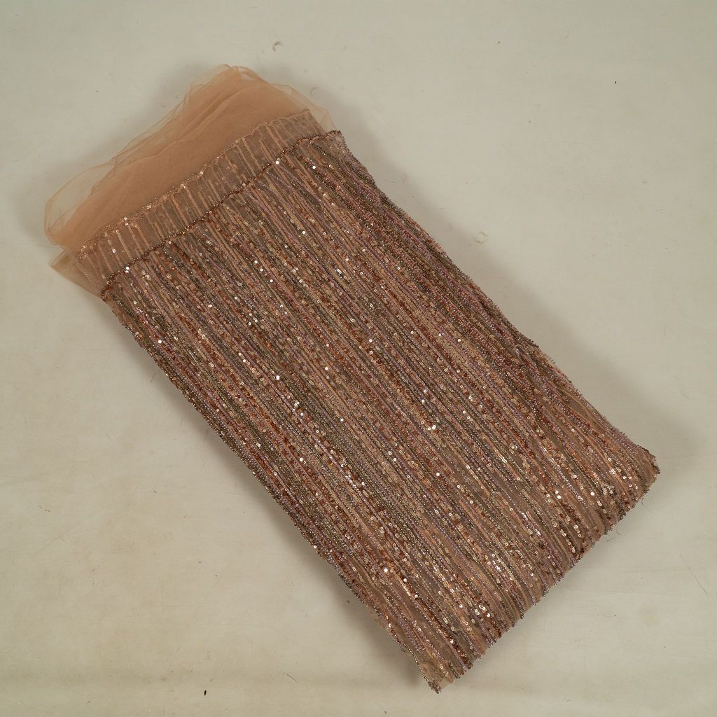 Turn heads with this dazzling Beige Colour Net Fabric, beautifully adorned with intricate embroidery featuring sequins and beadwork. The lightweight net base provides a sheer and elegant backdrop, while the shimmering sequins and delicate beads add a glamorous sparkle. Perfect for festive, bridal, and couture wear, this fabric effortlessly combines elegance with luxury. Its fluid drape and exquisite detailing make it a designer’s favorite for high-fashion ensembles.