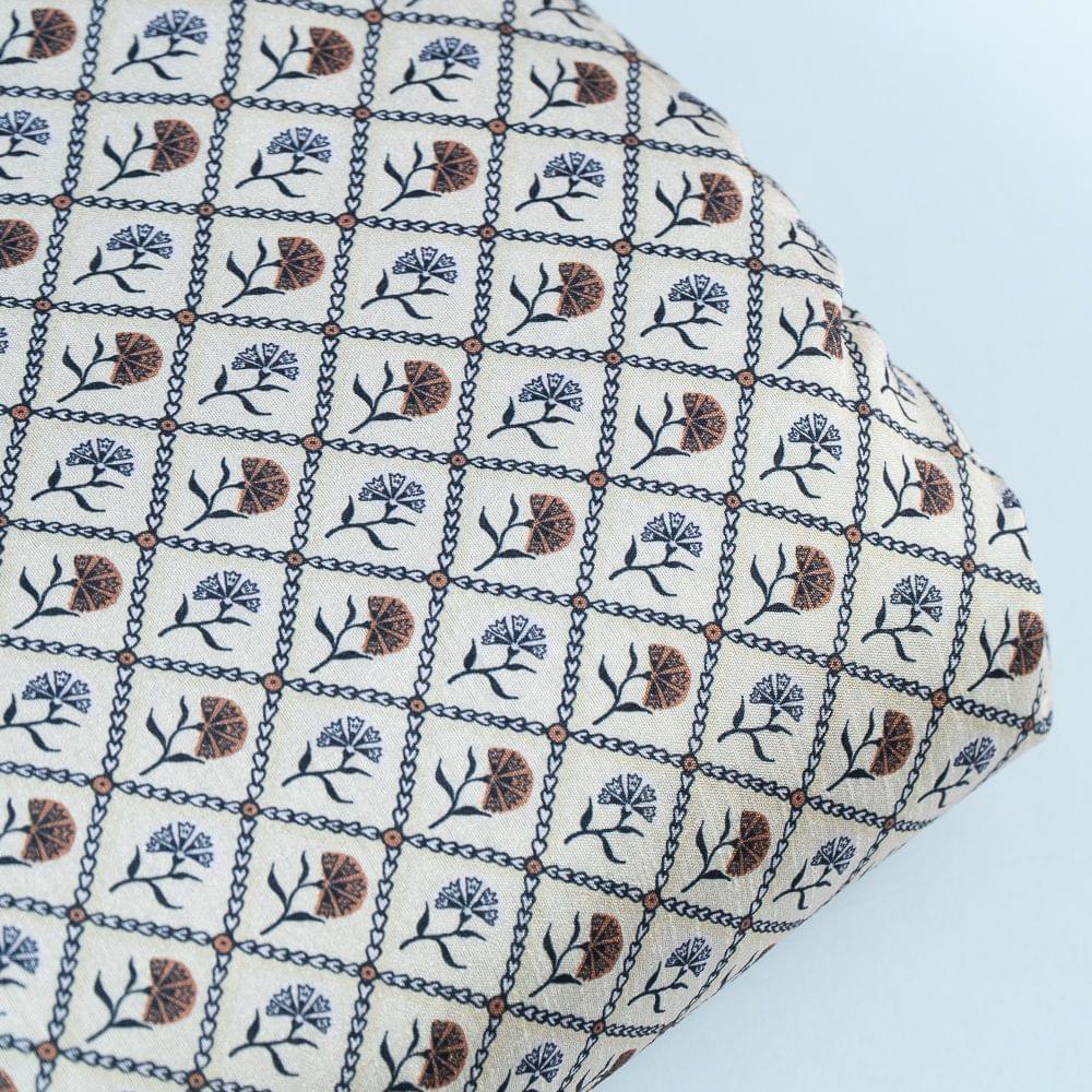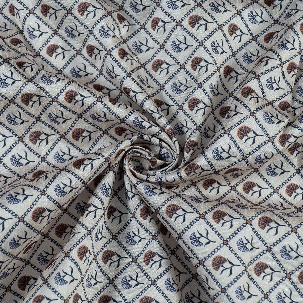| Fabric Name | Beige Color Poly Raw Silk Digital Print |