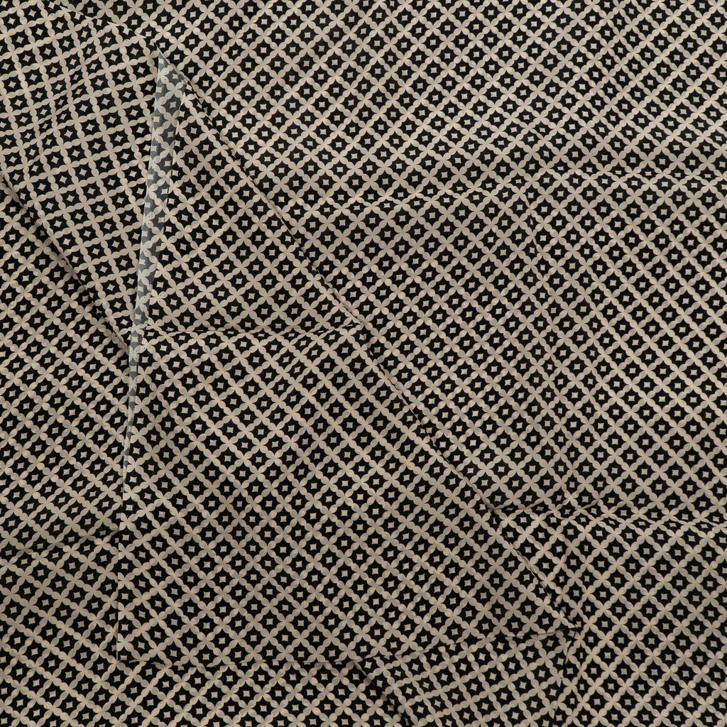 Add effortless elegance to your designs with this Viscose Crepe Digital Printed Fabric, featuring a refined monochrome pattern that blends modern minimalism with timeless style. The fabric showcases repeating floral-inspired geometric motifs, arranged in a balanced layout that creates a clean and sophisticated visual appeal.