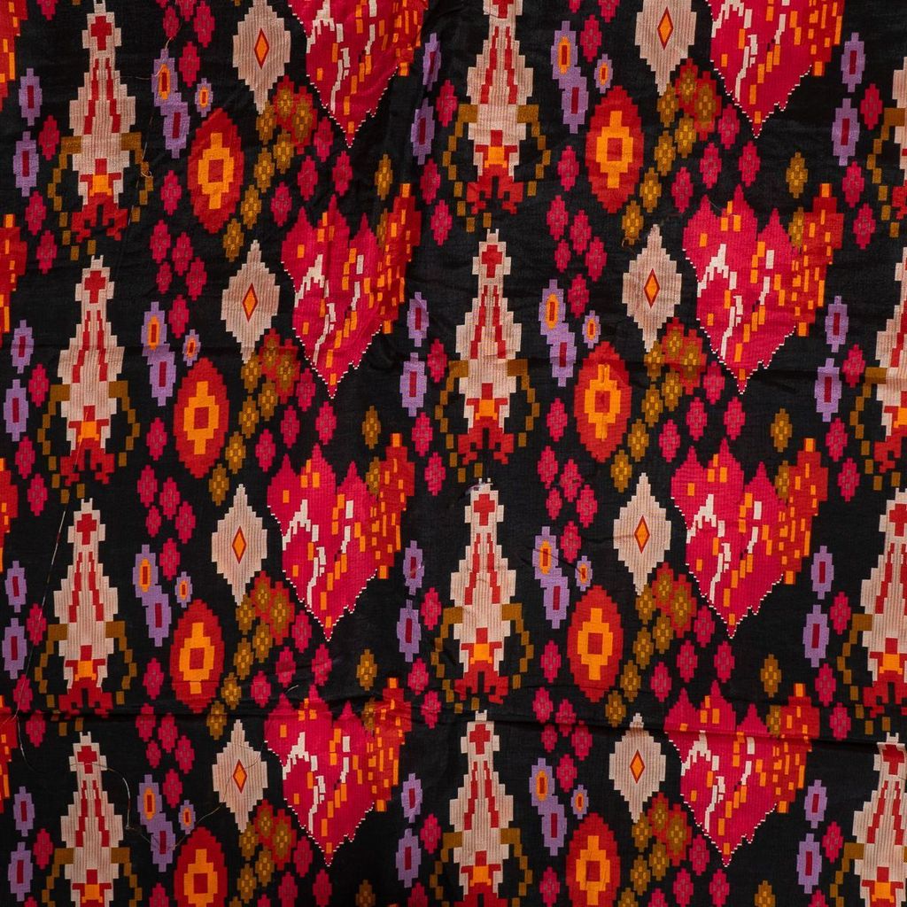 As luxurious as it seems, the dola silk has versatile textile details. The beautiful geormatric Patola pattern is spread over the length of the fabric in an abstract manner. The glowing material has a feathery touch, apt for adding shine to your personality. The affordable fabric comes in premium quality which can be transformed into dramatic blouses, ethnic shirts, sarees or suit sets. Even men s wear can crafted such such as jodhpuri jackets, kurtas and so on. SKU:100236091S