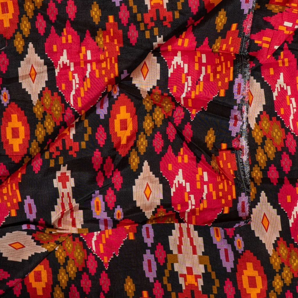| Fabric Name | Black Color Dola Silk Digital Printed Fabric |