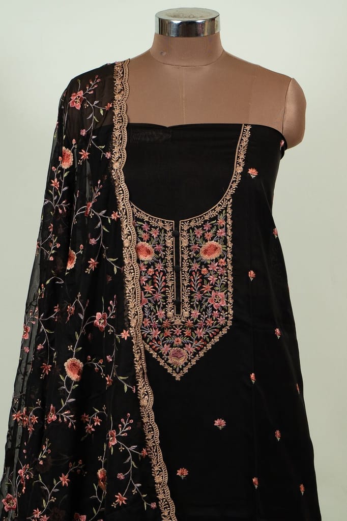 | Fabric Name | Black Color Embroidered Viscose Organza Shirt with Bottom and Embroidered Viscose Organza Dupatta |