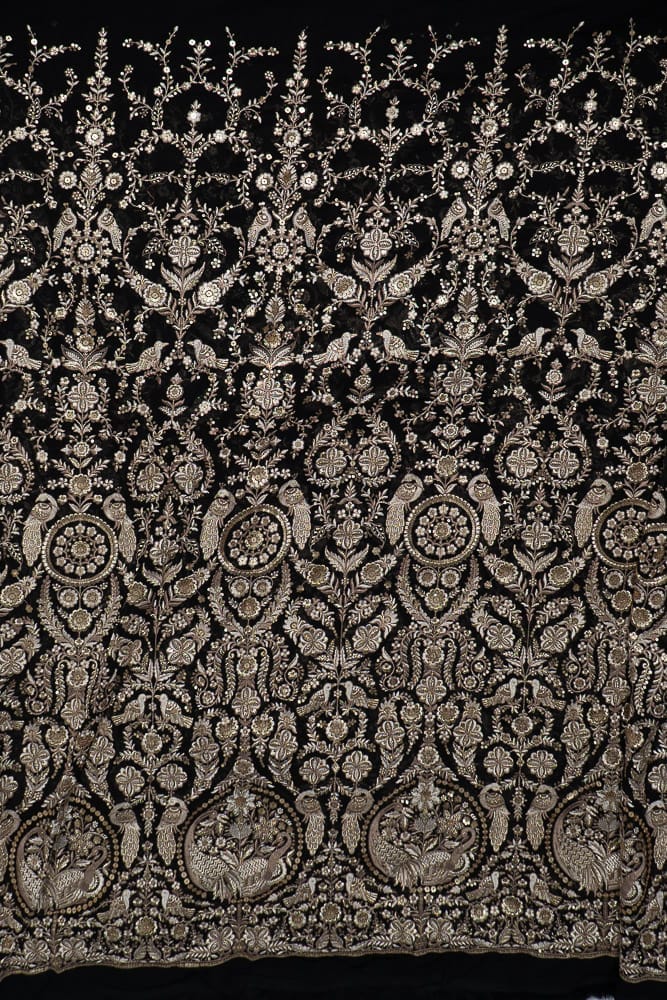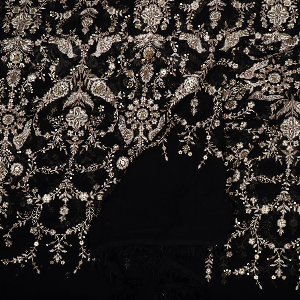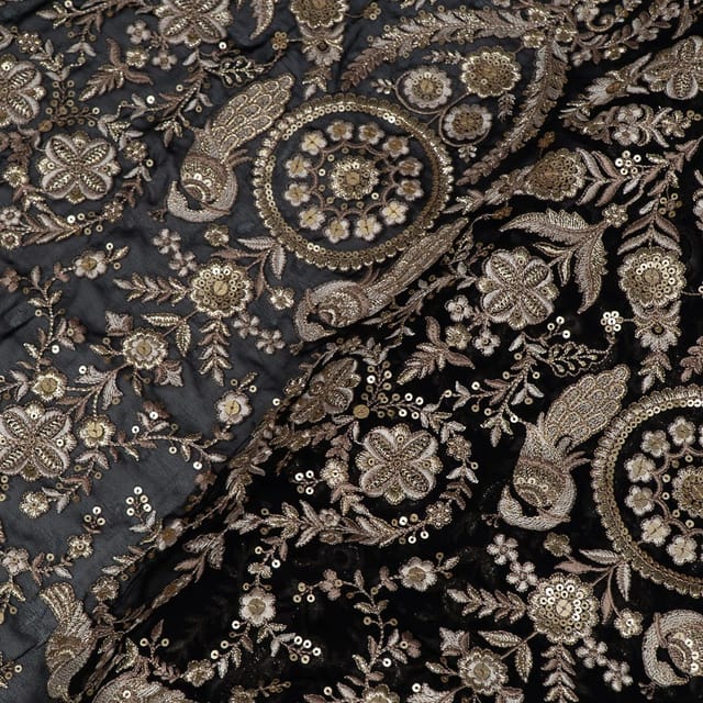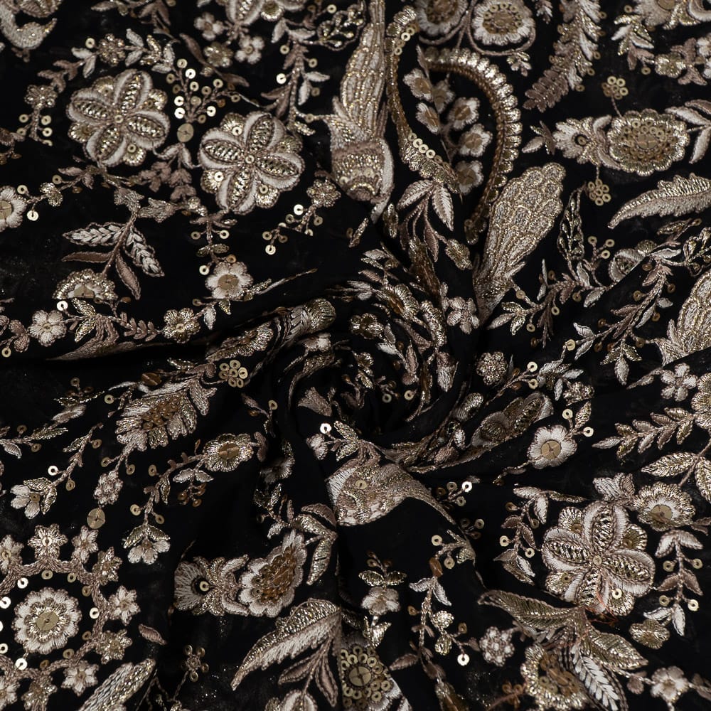 Black Georgette Embroidered Fabric with Thread, Zari & Sequin Work – 50” Width
