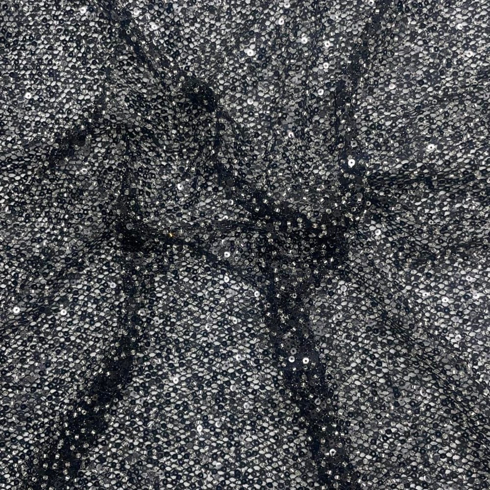 | Fabric Name | Black Color Lycra Sequence Fish Net Embroidered Fabric |