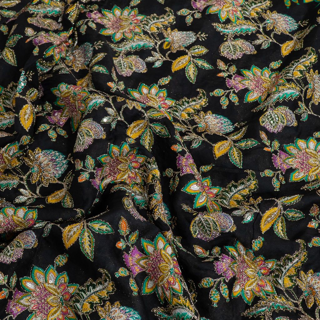 | Fabric Name | Black Color Tissue Print with Embroidered Fabric |