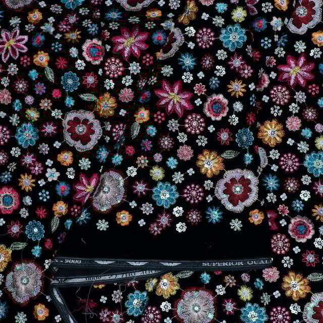 Fabric Name | Black Color Velvet Embroidered Fabric |