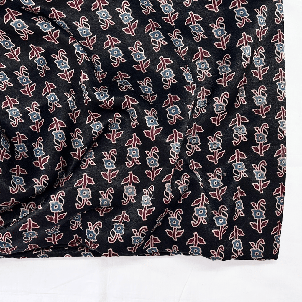 | Fabric Name | Black Floral Printed Mashru Ajrakh Silk Fabric |