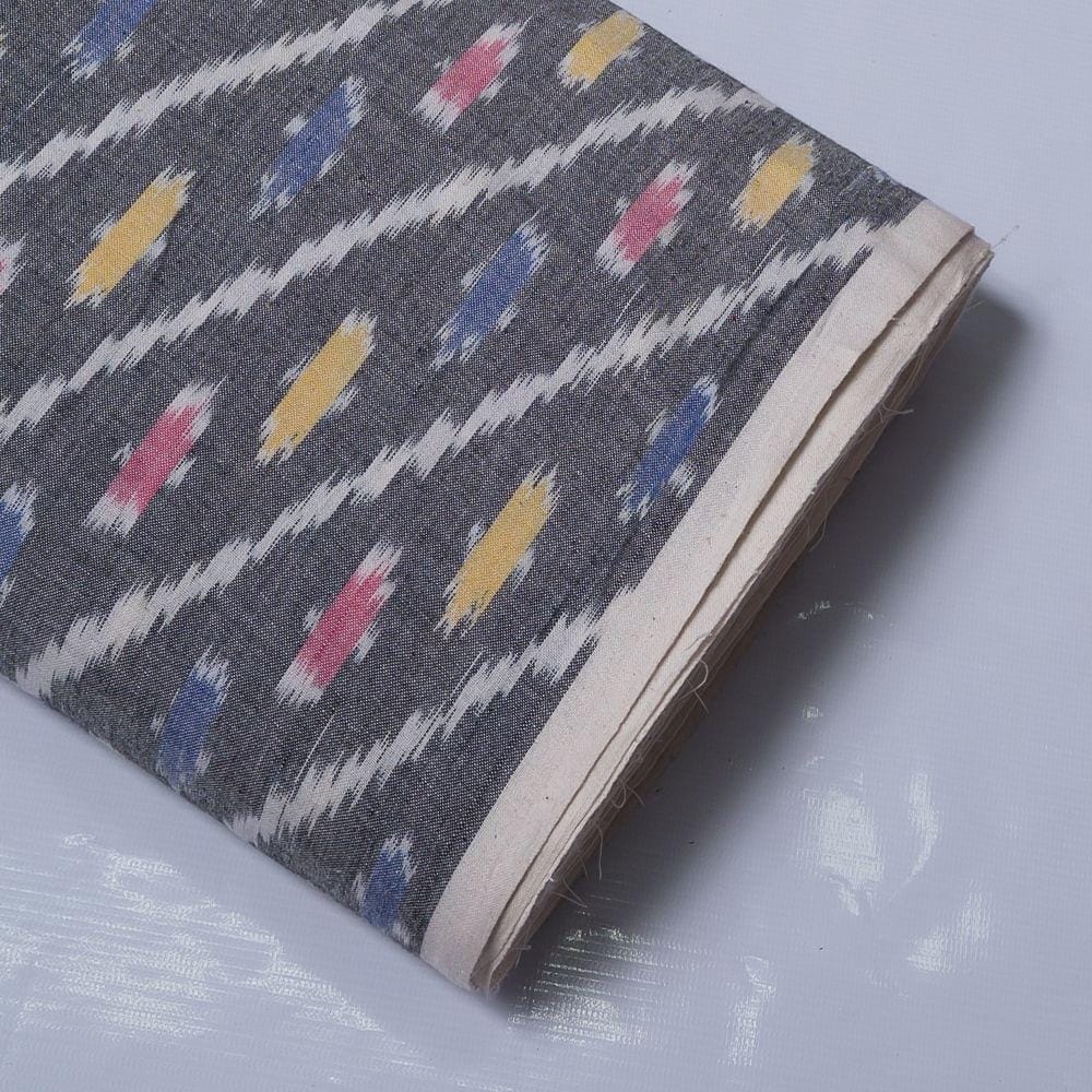 Ikat is a much-loved rich Indian weave and is always a designer's first love for their pret line. This ikkat with black base and multi-colour weaving will make interesting jackets, skirts, dresses, kurtas, blouses and trousers as well. SKU:9023060670