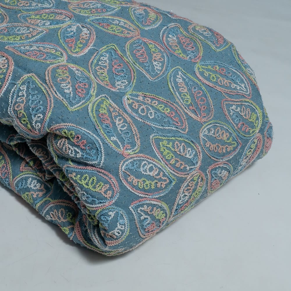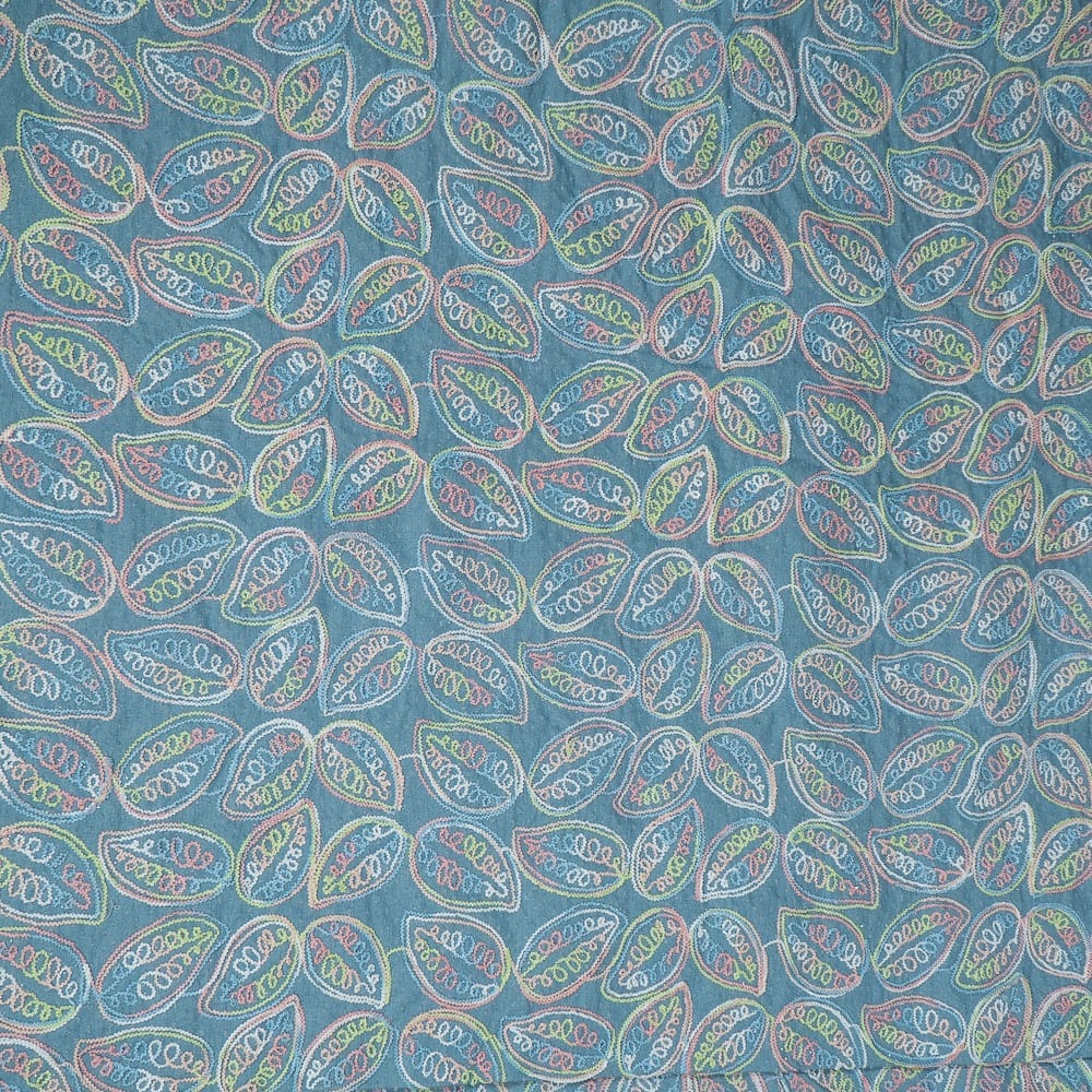 Multicolour Thread Embroidered Denim Fabric – Leaf Motif Design
