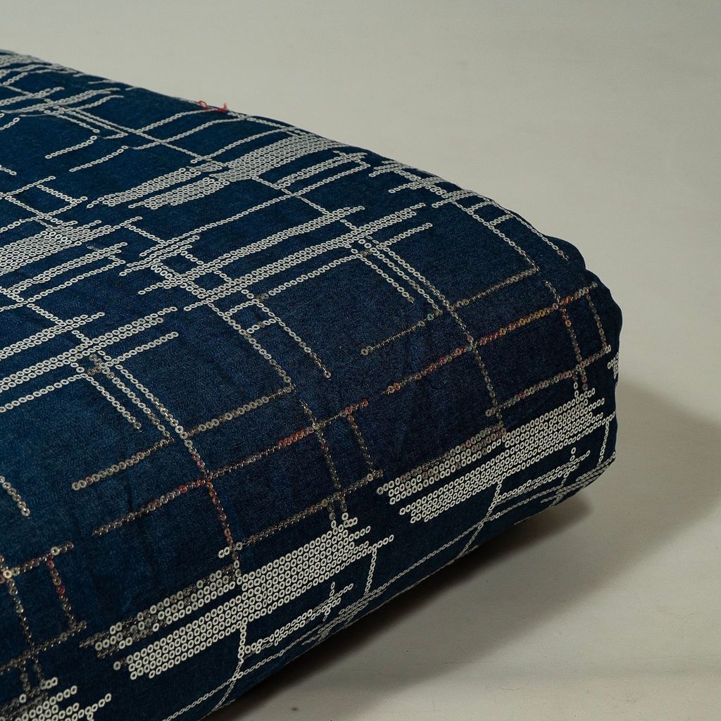 Add a modern twist to classic denim with our denim fabric embellished with dazzling sequin embroidery in a striking geometric pattern. This fabric brings together the rugged durability of denim with the shimmering elegance of sequins, making it ideal for fashion-forward designs. Perfect for creating bold jackets, skirts, or statement accessories, this fabric offers versatility while ensuring your creations stand out. The intricate geometric design adds a contemporary edge, making it a great choice for designers looking to combine structure with sparkle in their collections. SKU: 100243989, DNO: 3025