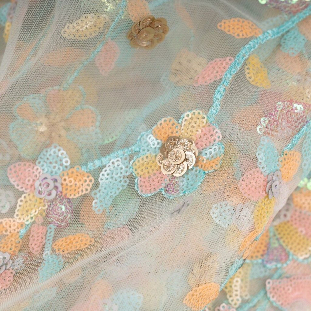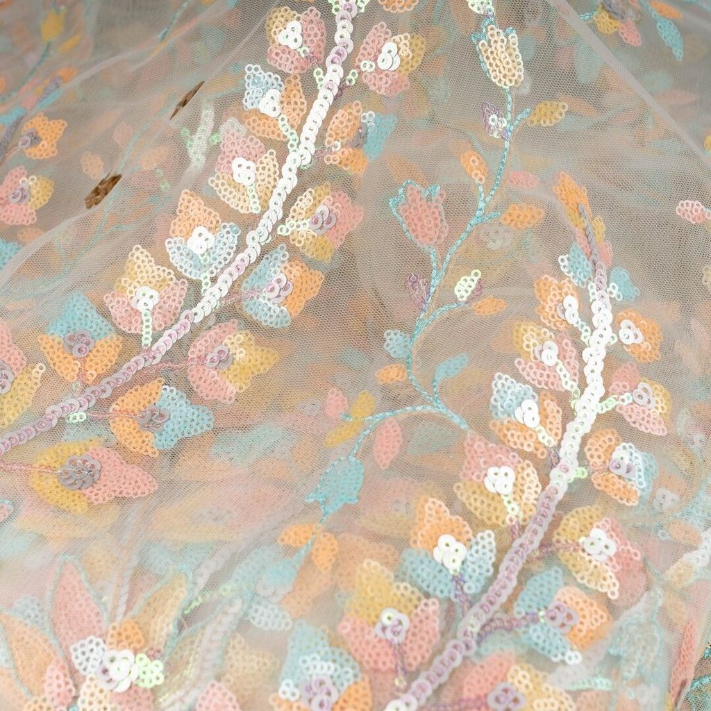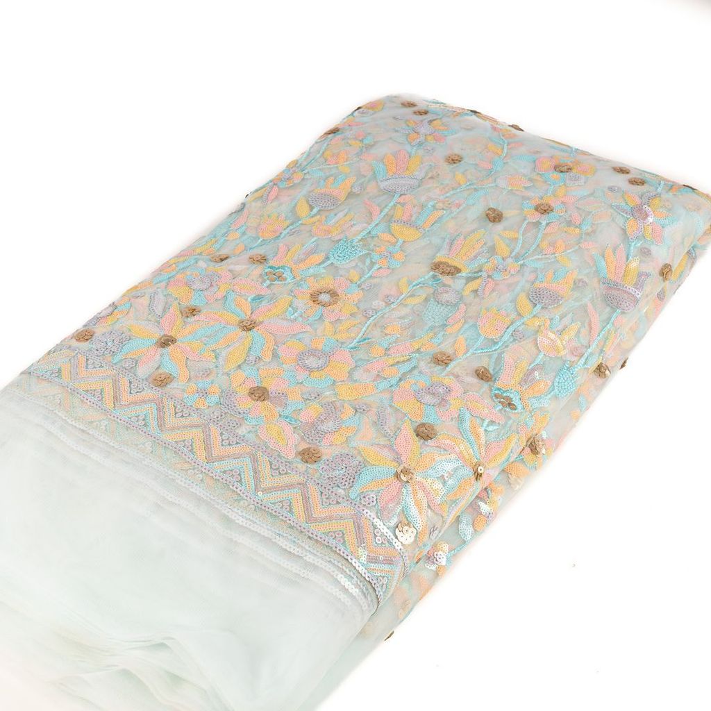 | Fabric Name | Blue Net Fabric With Multi Color Sequins Work |
