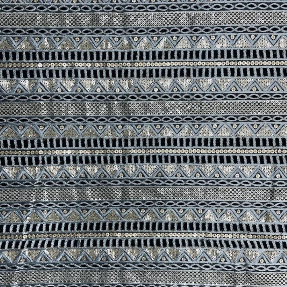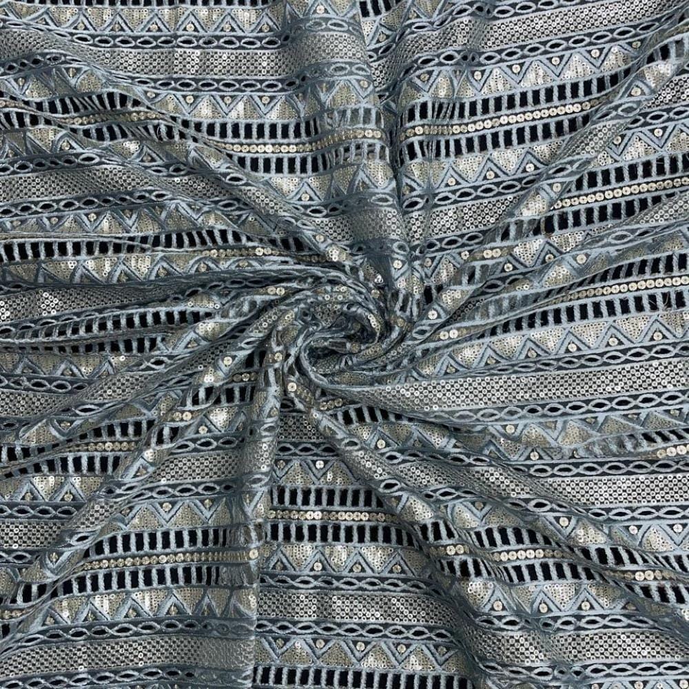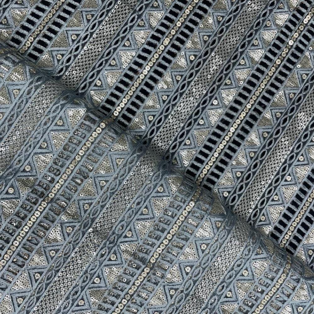| Fabric Name | Blue Grey Color Stripes Embroidered Net Fabric |