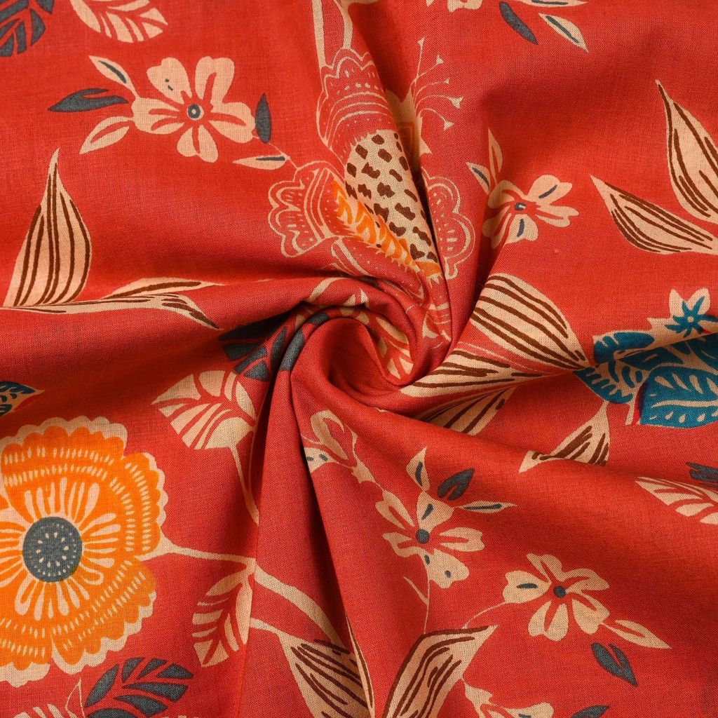 | Fabric Name | Brick Red Color Cambric Cotton Printed Fabric |