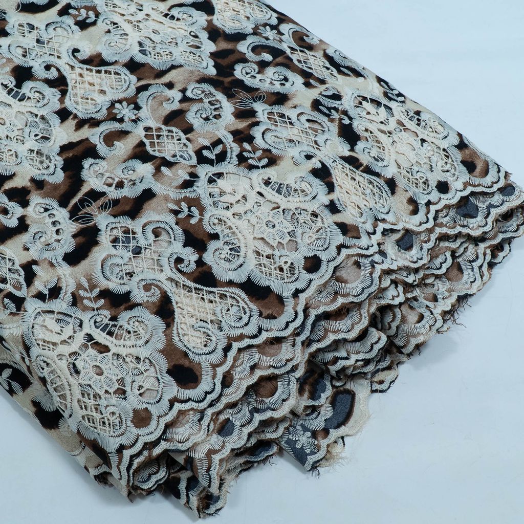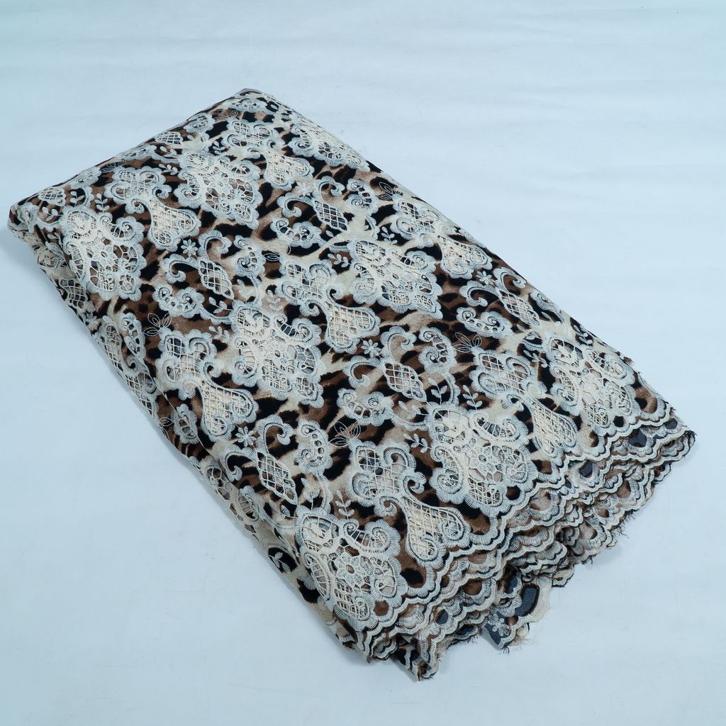 Fabric NameBrown Color Crepe Cutwork Embroidered Fabric