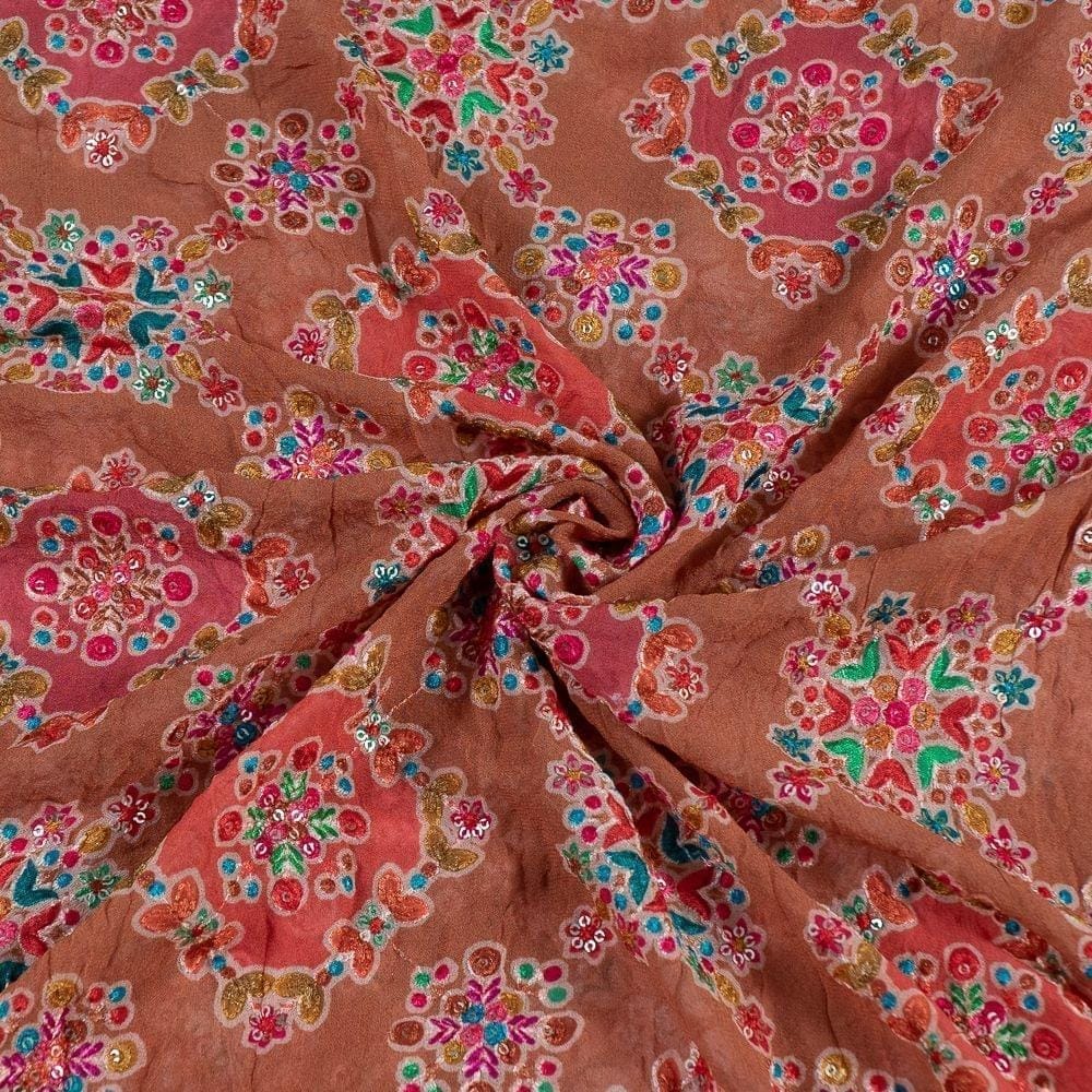 | Fabric Name | Brown Color Georgette Print With Embroidery |