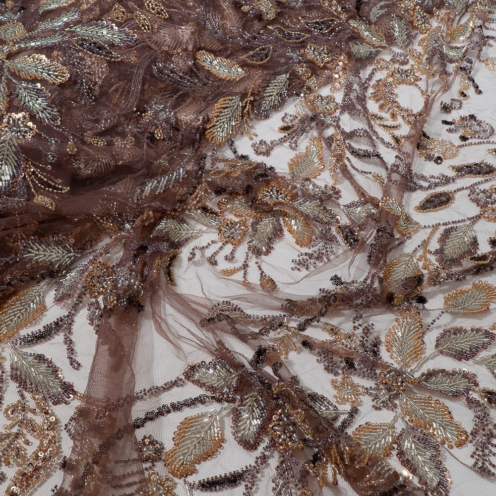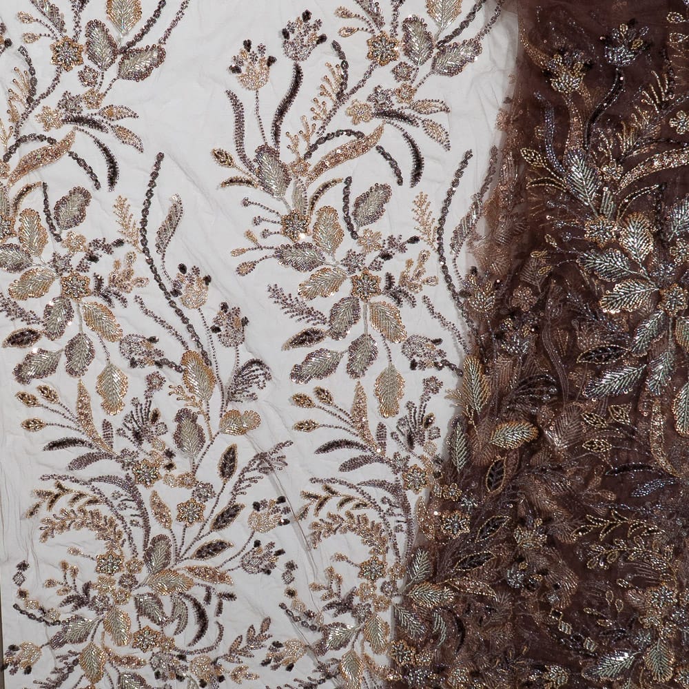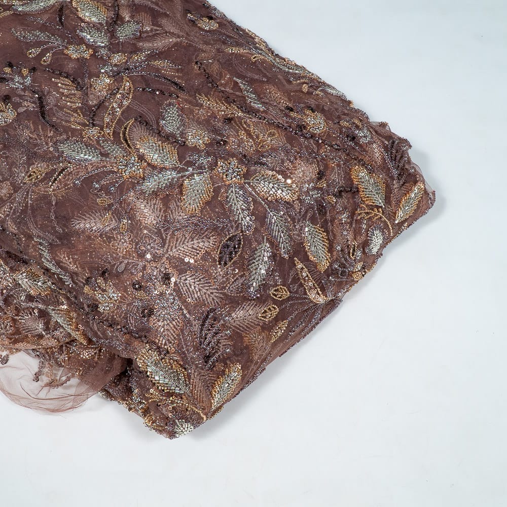 | Fabric Name | Brown Color Imported Net Embroidered Fabric |