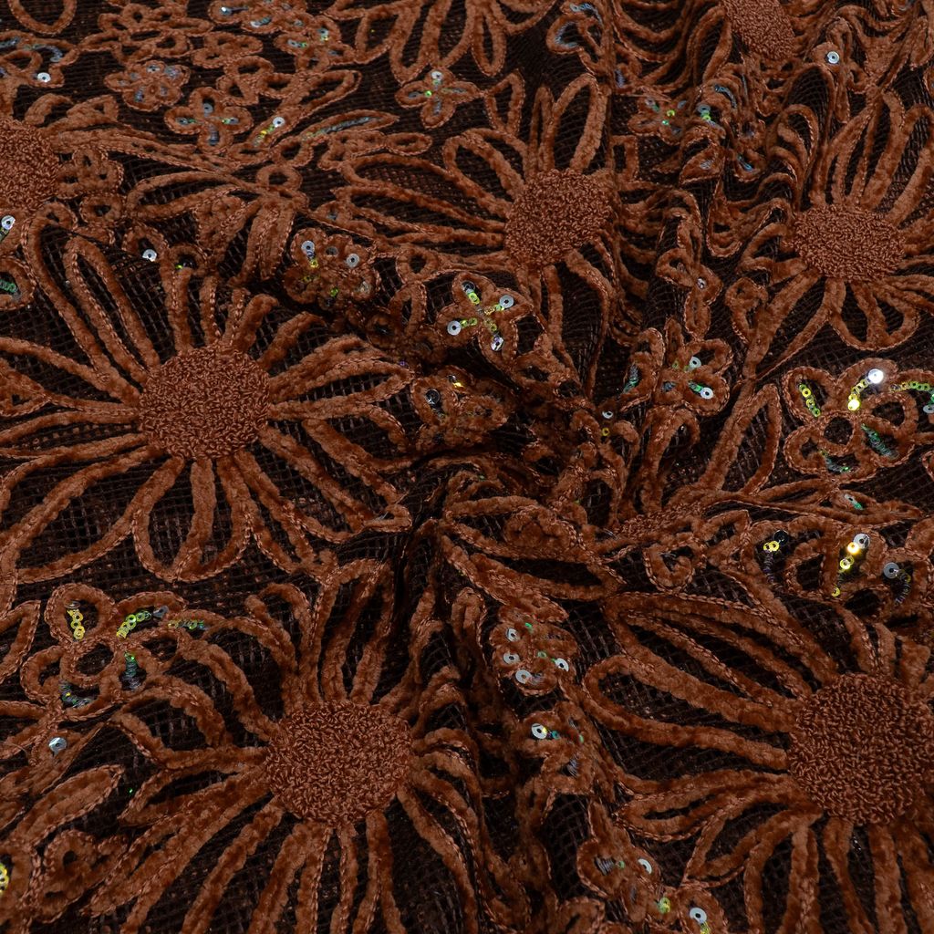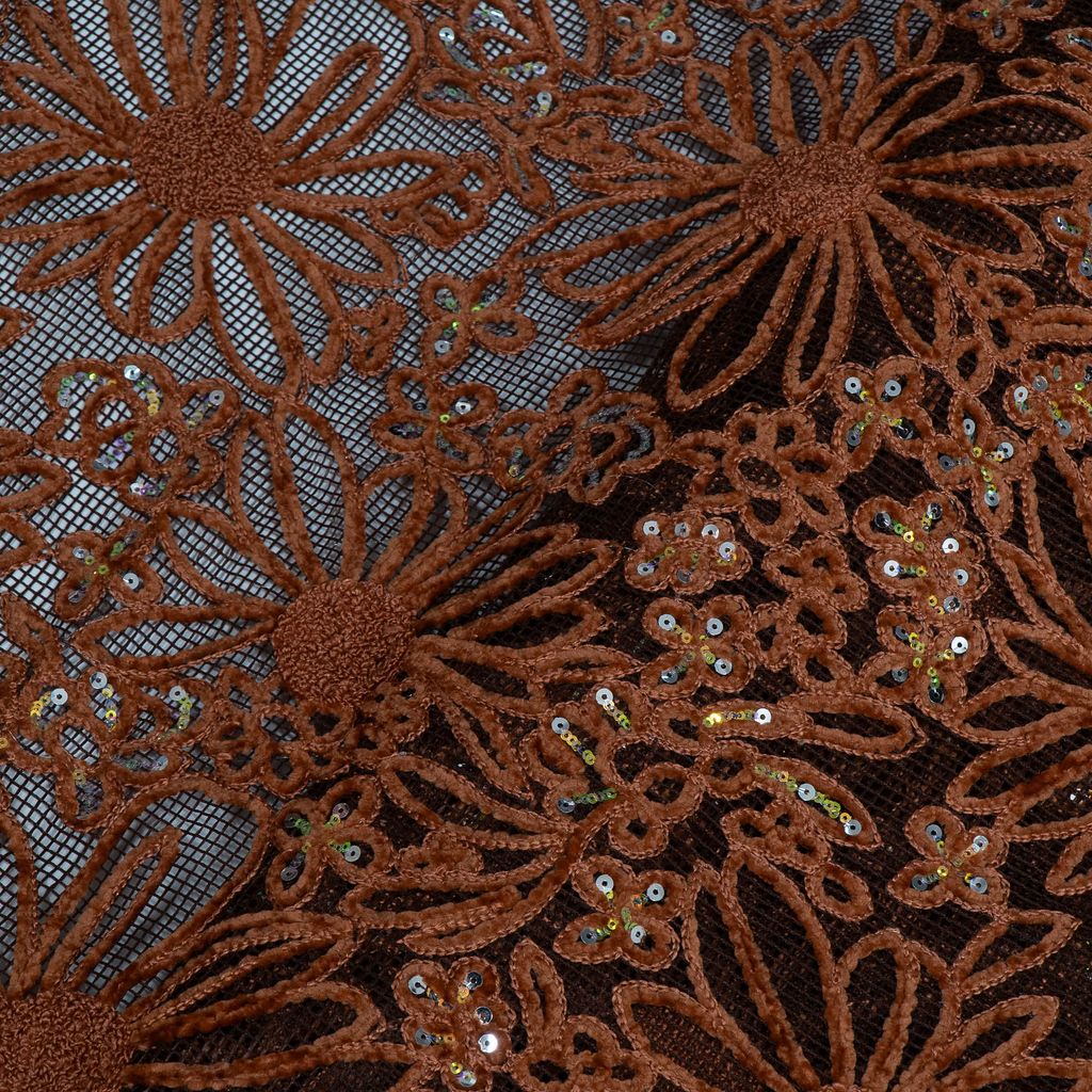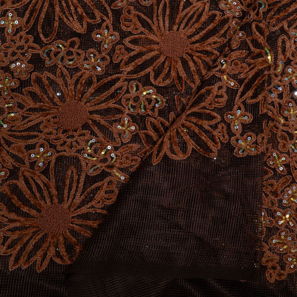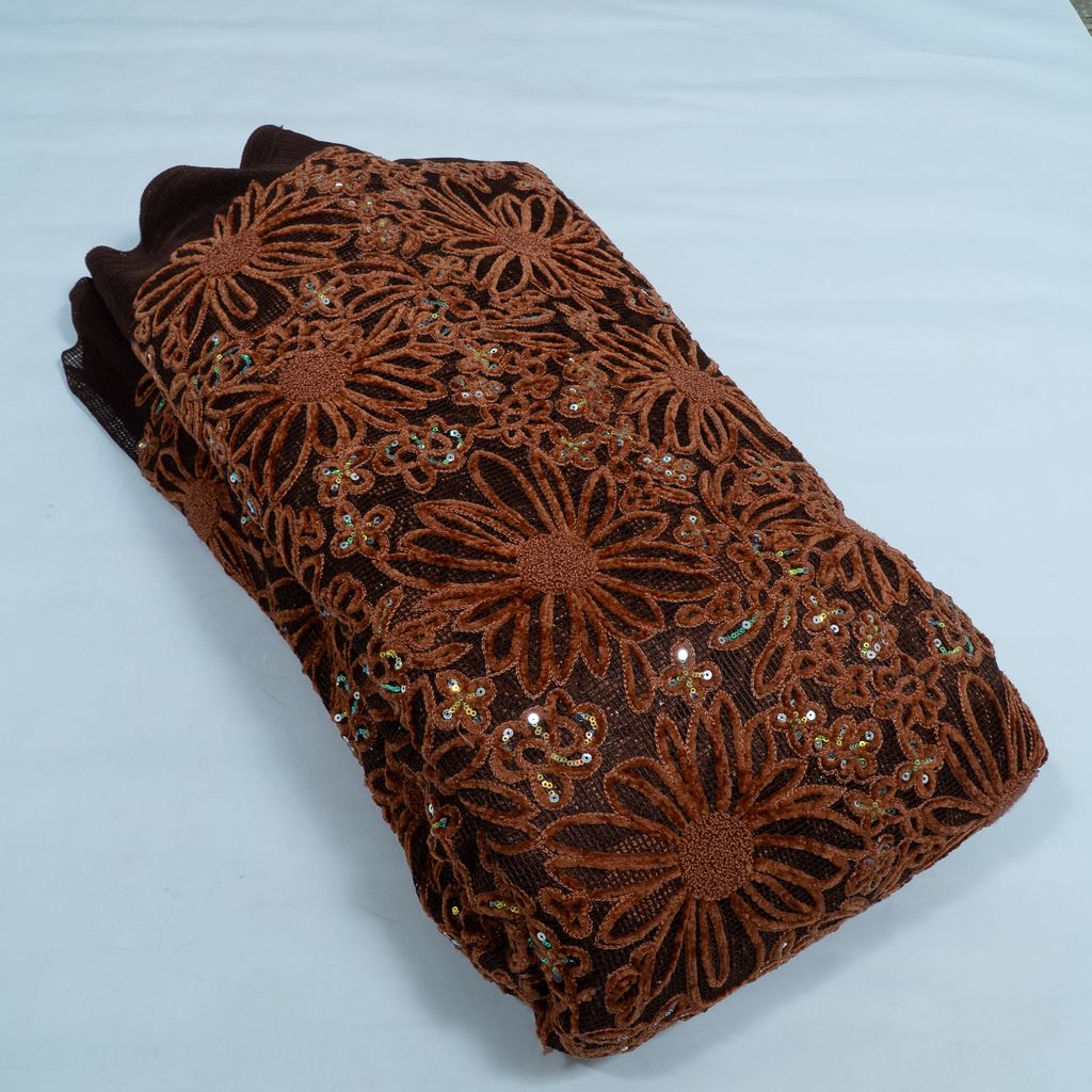 | Fabric Name | Brown Color Imported Net Embroidered Fabric |