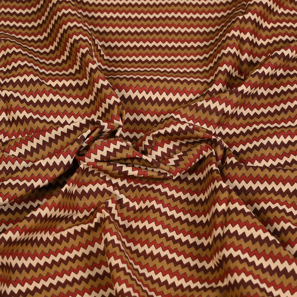 645cf11e5f85cc82dcd4905d Brown Colour Zig Zag Cotton Printed fabric https://www.fabcouture.in/s/5a6ef16301bd210c588e3577/6929b1a687afca5b2a13f48b/100231663fpercent20-3-.jpg Earthy colours are the season favorite and this floral pattern does all justice to this pure cotton fabric. Give wings to your imagination and wear this as a kurta or trouser as per your liking. 100231663F