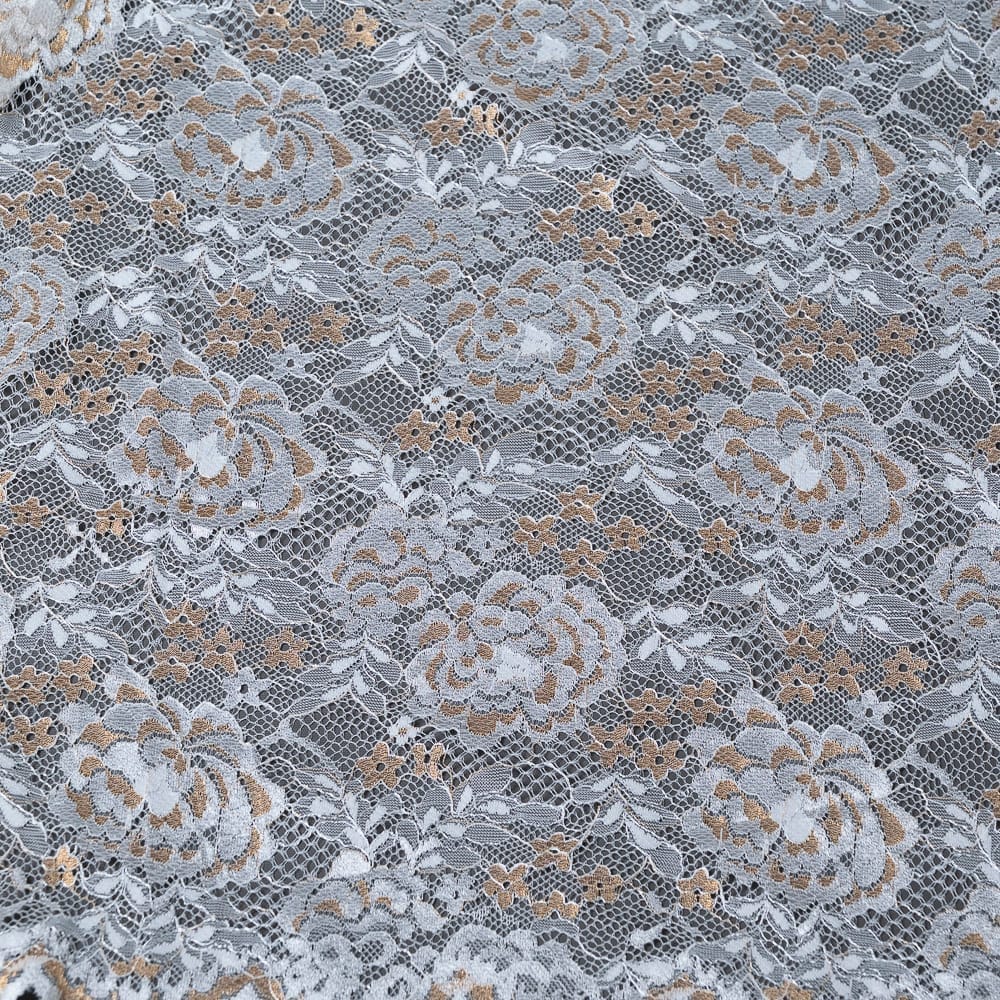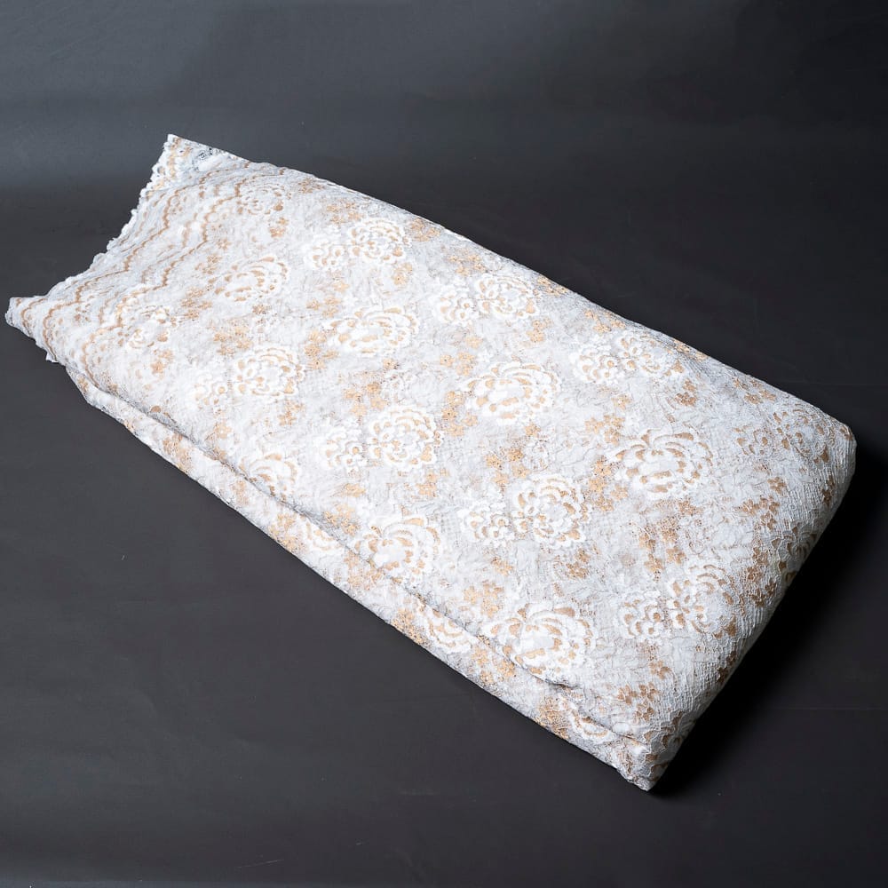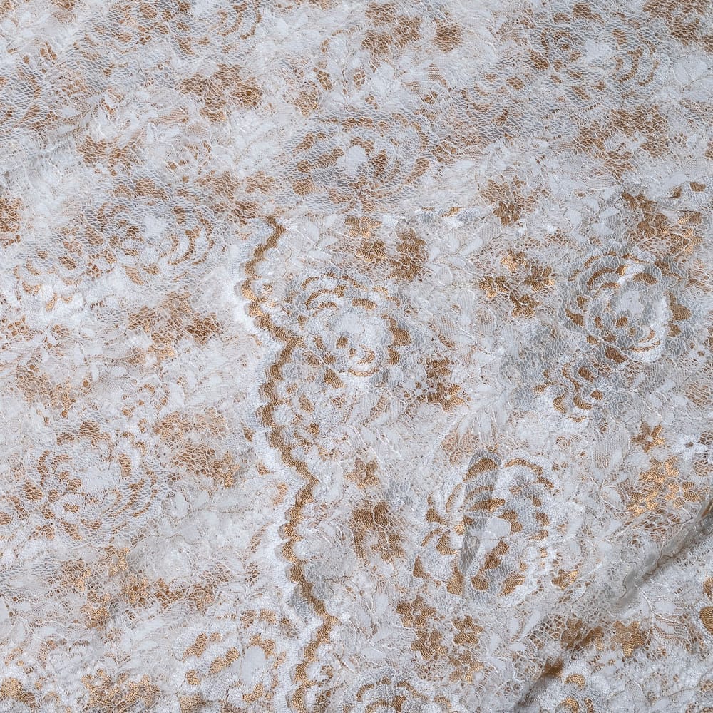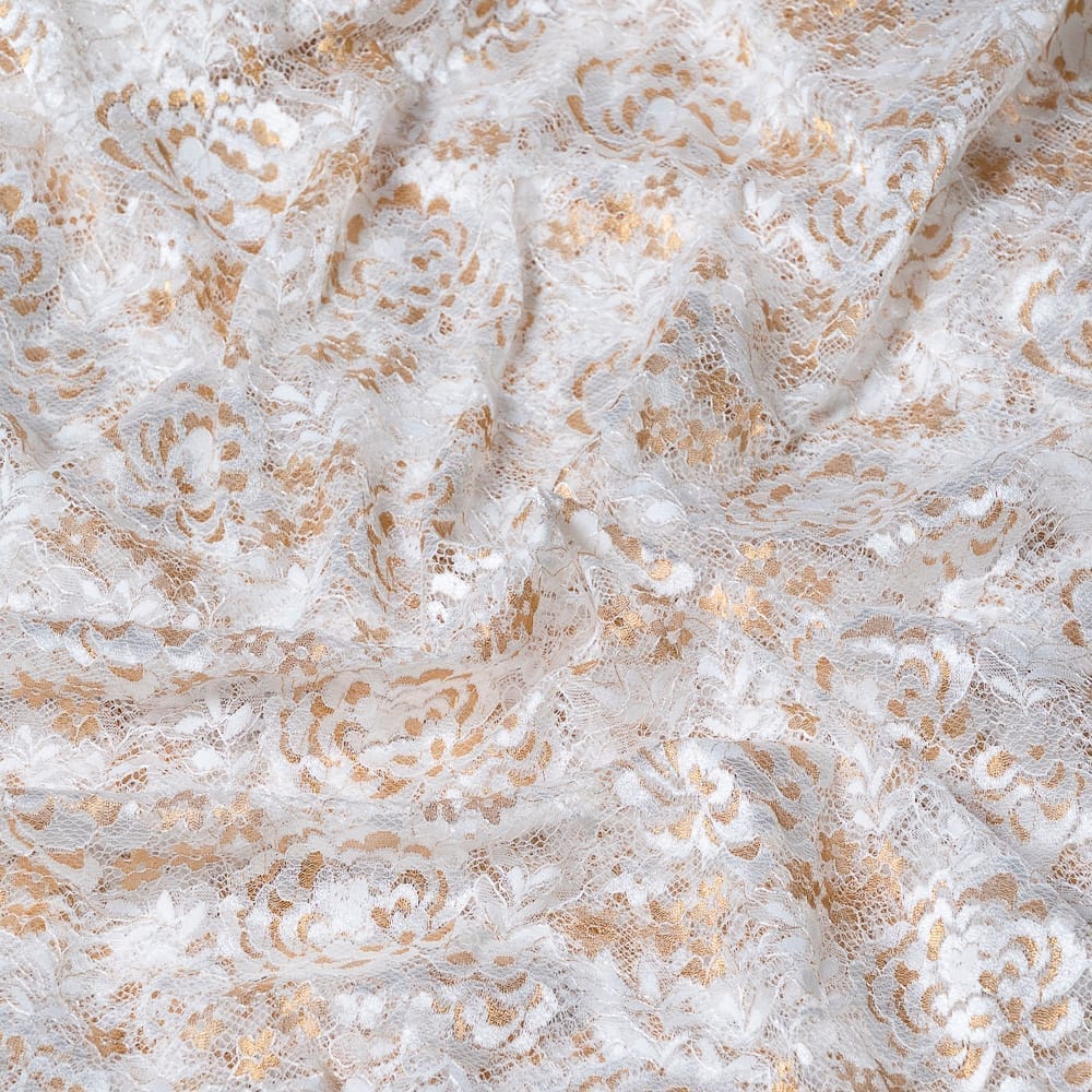 This is from the FabCouture Lace Collection. Add a pinch of glamour and style to any attire with Fab Couture's range of authentic chantilly lace fabric with touch of golden zari. Adds a rich look to any otherwise simple fabric instantly. SKU: 10023885
