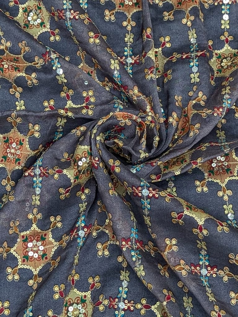 | Fabric Name | Charcoal Grey Positioned Print On Soft Organza |