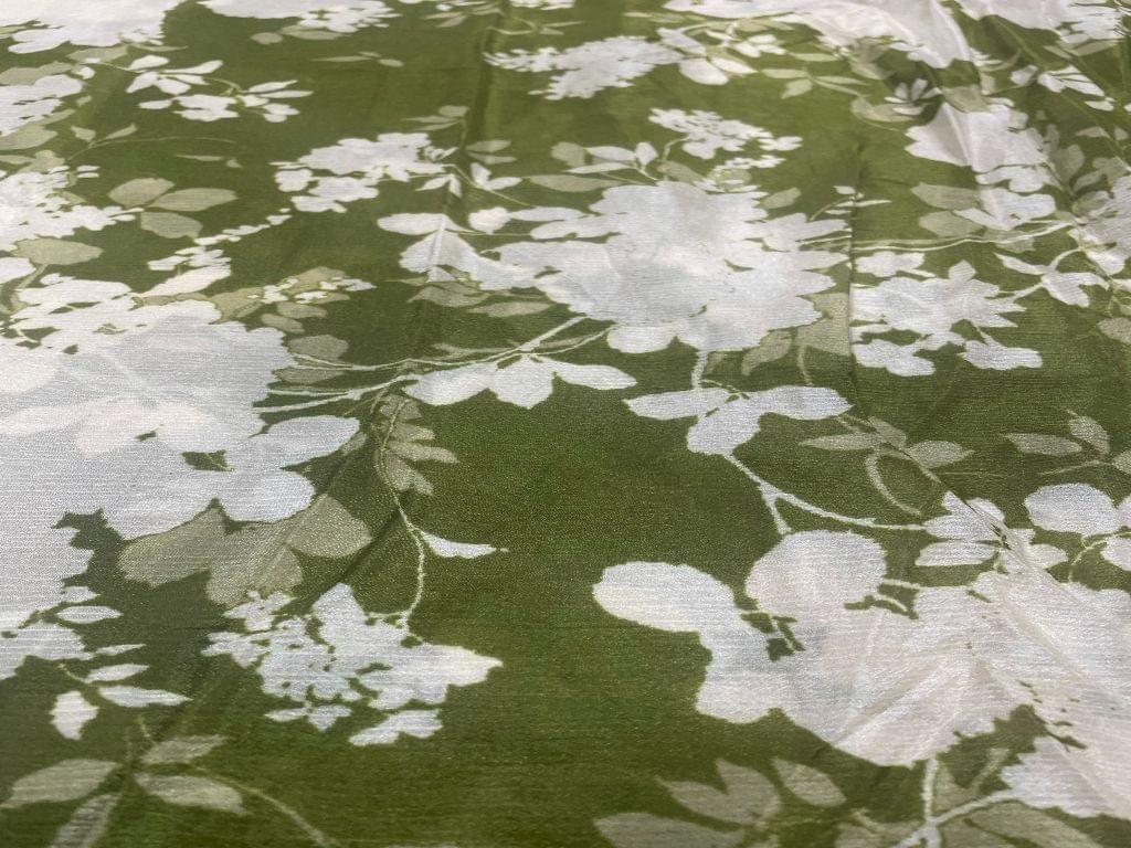 Chiffon Mehndi Green White Abstract Width 44 Inch / 112 Cm SKU:K2022