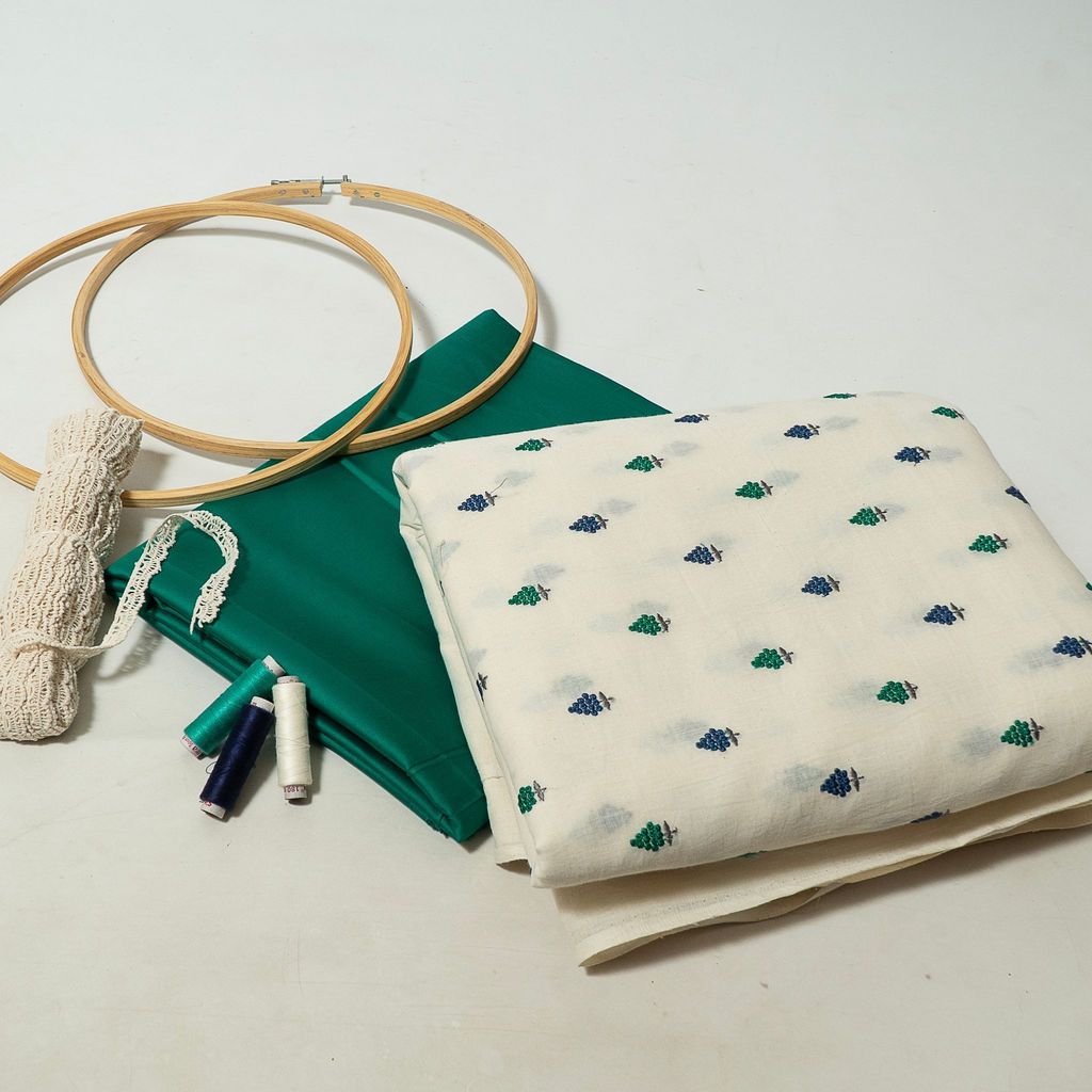 | Fabric Name | Cream Color Cotton Embroidered Fabric with Lace and Green Color Glaze Cotton Fabric DIY Set |