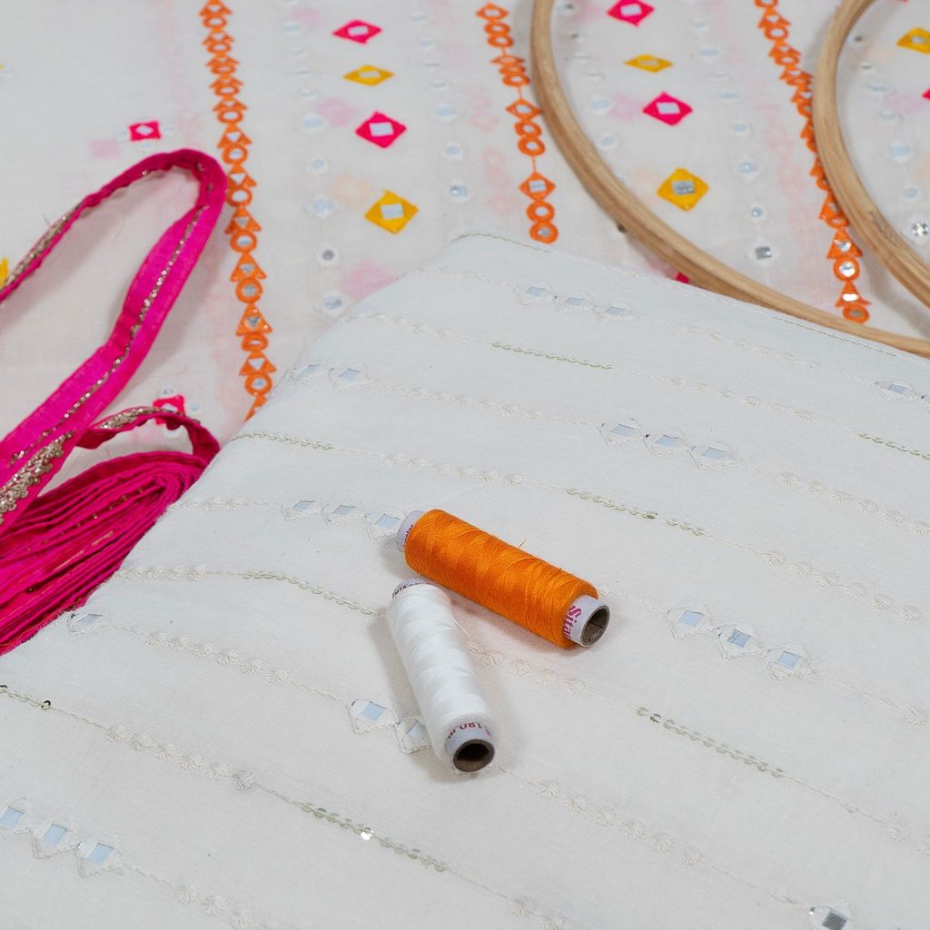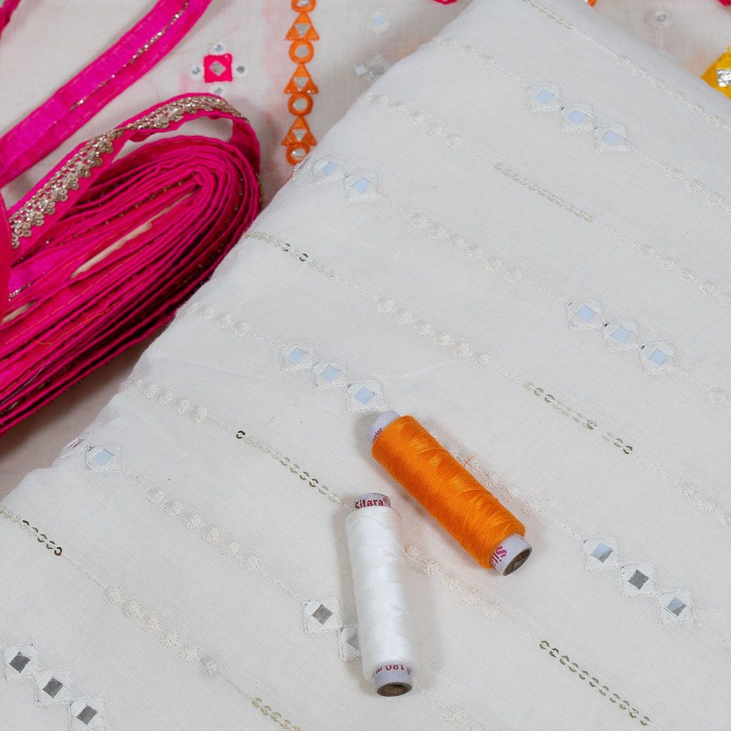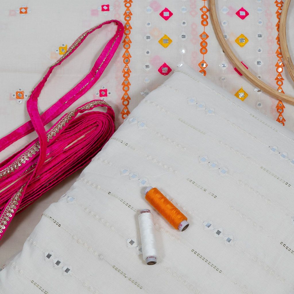 | Fabric Name | Cream Color Cotton Embroidered Fabric with Lace and Multi Color Cotton Embroidered Fabric DIY Set |