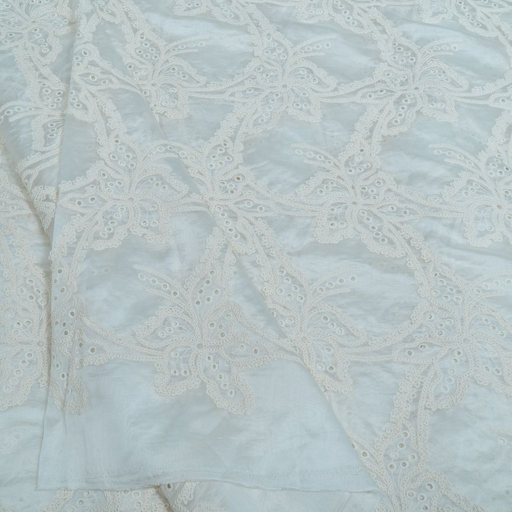 Fabric NameCream Color Tencel Cutwork Embroidered Fabric