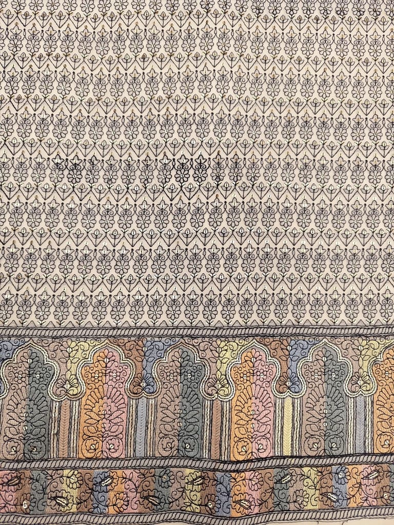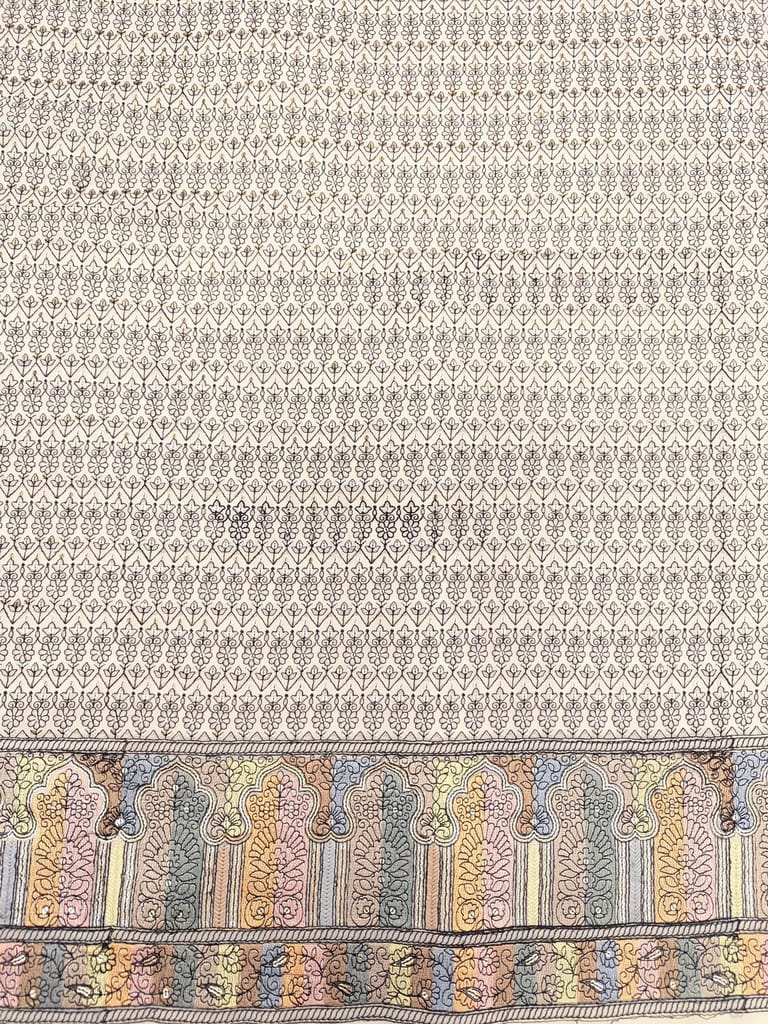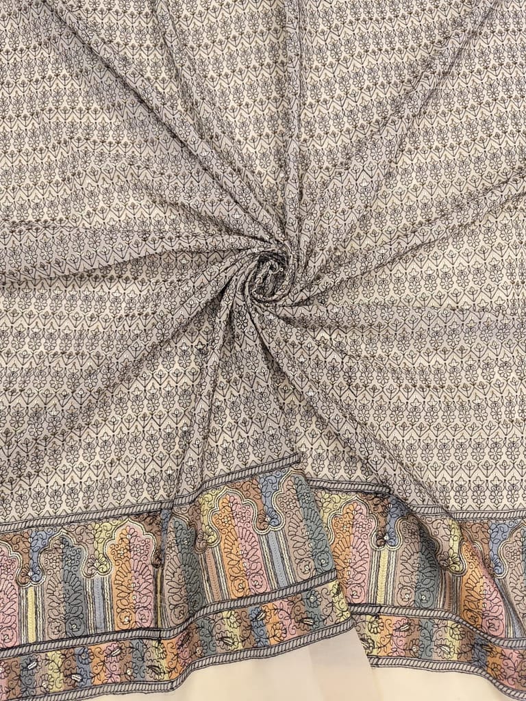 | Fabric Name | Cream fabric with multi colour embroidered border |