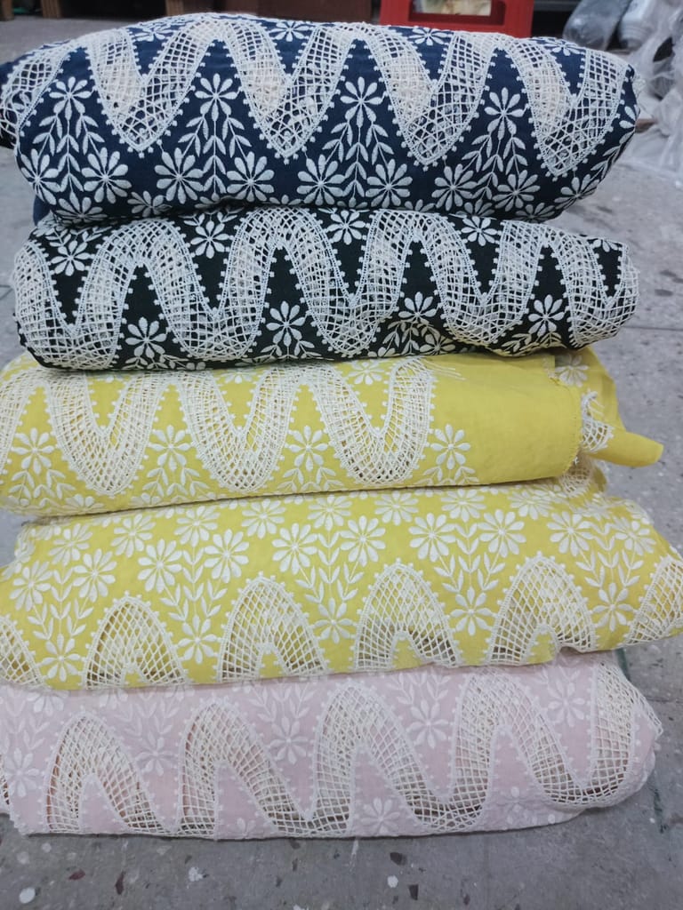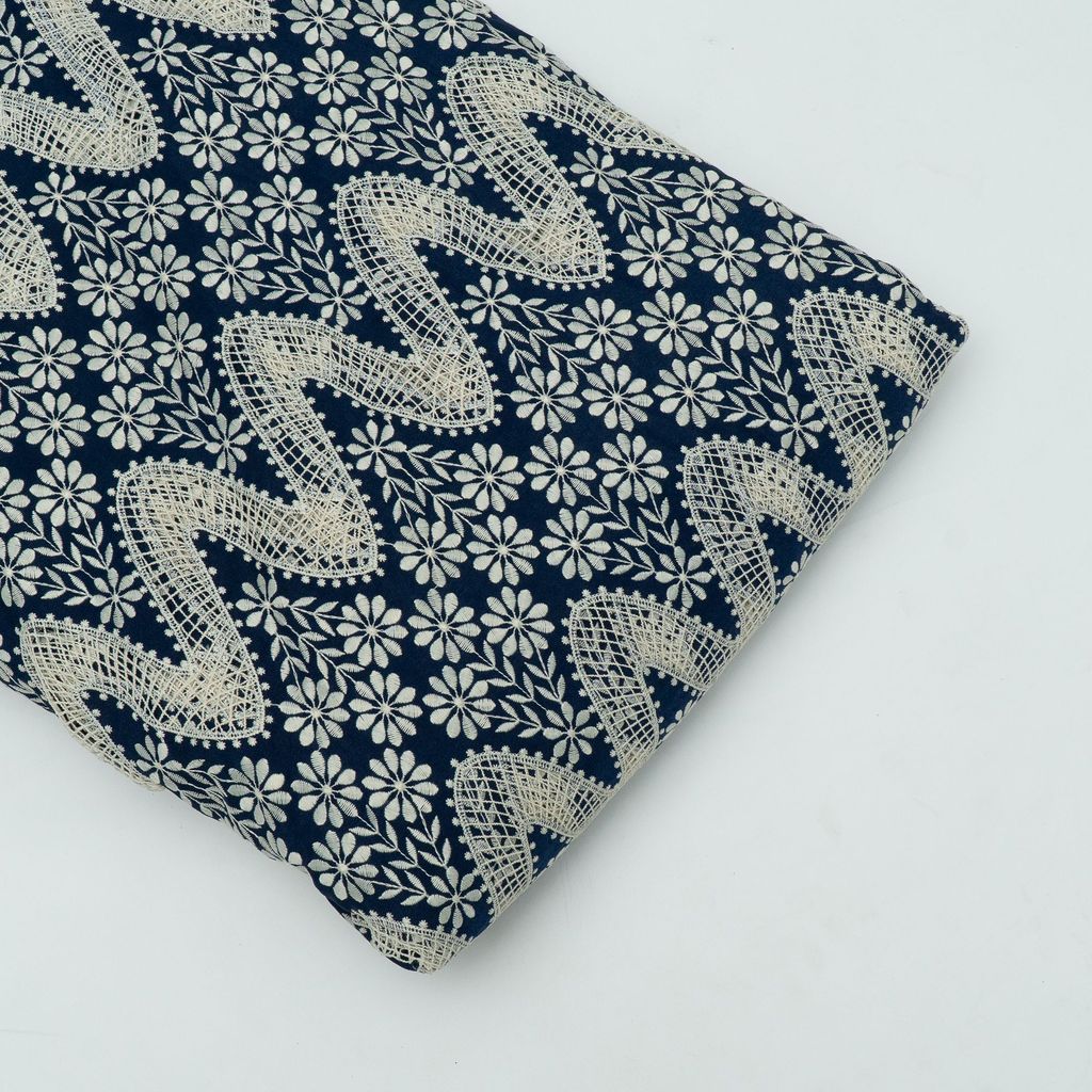 | Fabric Name | Blue Color Crepe Cutwork Fabric |