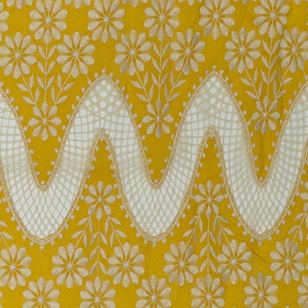 Crepe cutwork fabric epitomizes refined elegance, combining the luxurious drape of crepe with intricate cutwork detailing. The delicate cutouts create an artful pattern, adding a touch of sophistication to the fabric. Ideal for formal wear and upscale occasions, this textile effortlessly merges modern aesthetics with classic craftsmanship. SKU:8023112363