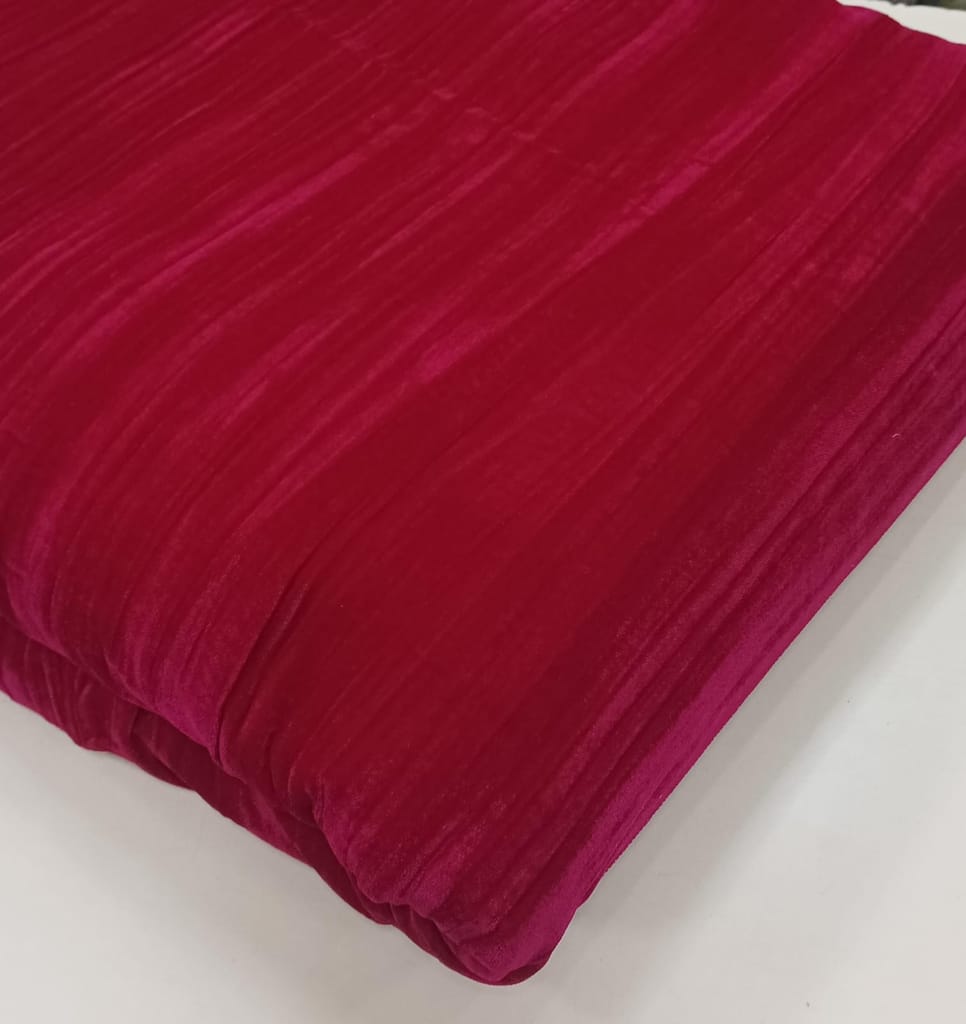 Experience luxury and sophistication with our Crushed Pleated Velvet Fabric, thoughtfully crafted to add depth, texture, and opulence to your creations. This fabric features an elegant crushed pleat texture, providing an exceptionally rich look and a soft, plush feel. Available in an array of vibrant and fashionable colors, it gives you the versatility to create standout garments and accessories. Ideal for evening dresses, gowns, jackets, skirts, fashion accessories, and home décor elements like cushion covers and curtains. Perfectly suited for designers, boutiques, and fashion enthusiasts seeking sumptuous style and luxurious comfort.