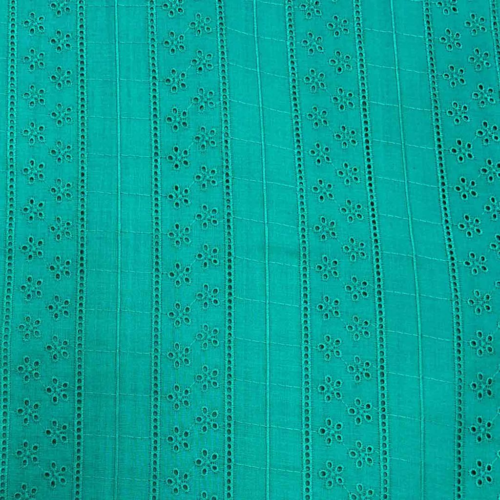 Elevate your sewing projects with the beautiful Cyan Shade Embroidered Cotton Hakoba Print Fabric. This fabric features a stunning embroidered pattern and is made from high-quality cotton, providing both style and comfort. Perfect for creating one-of-a-kind pieces that will make you stand out. SKU-HHKOO5G
