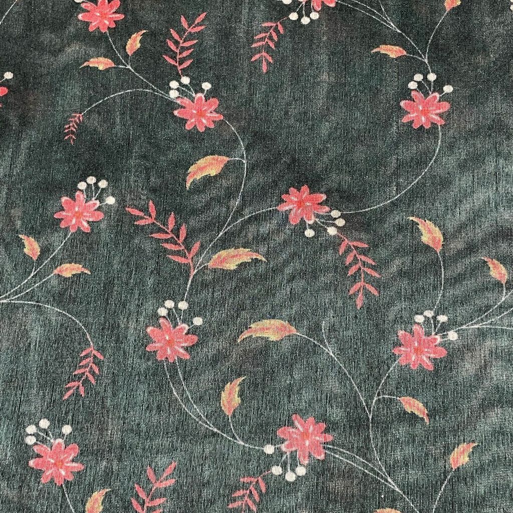 | Fabric Name | Dark Green Color Semi Tussar Printed Fabric |