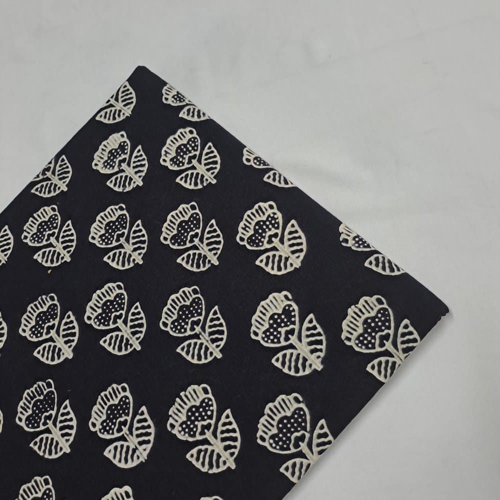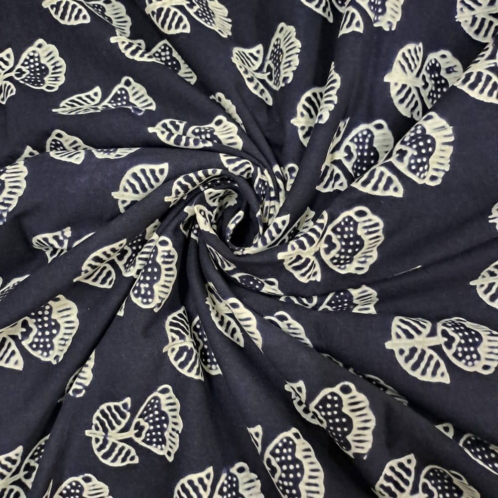 | Fabric Name | Dark Navy Blue Color Cambric Cotton Printed Fabric |