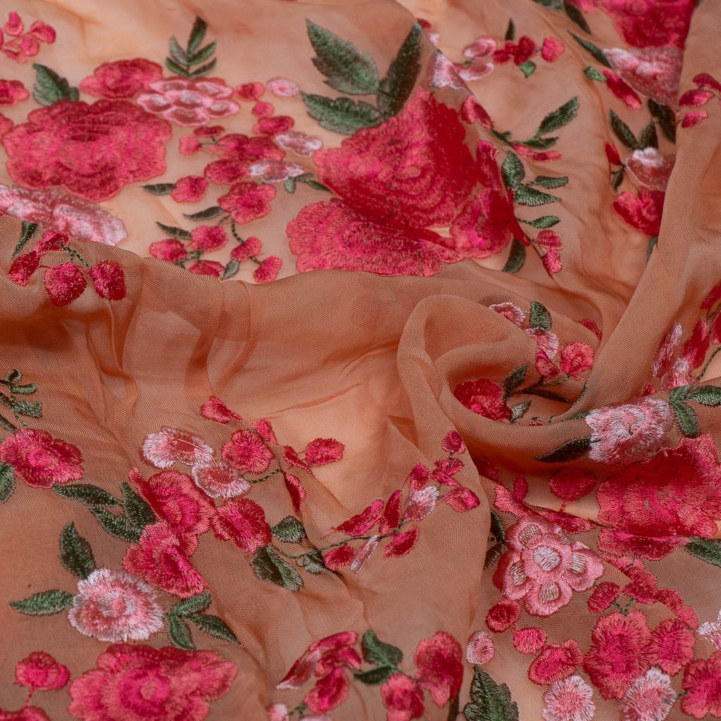 | Fabric Name | Dark Peach Color Georgette Embroidered Fabric |