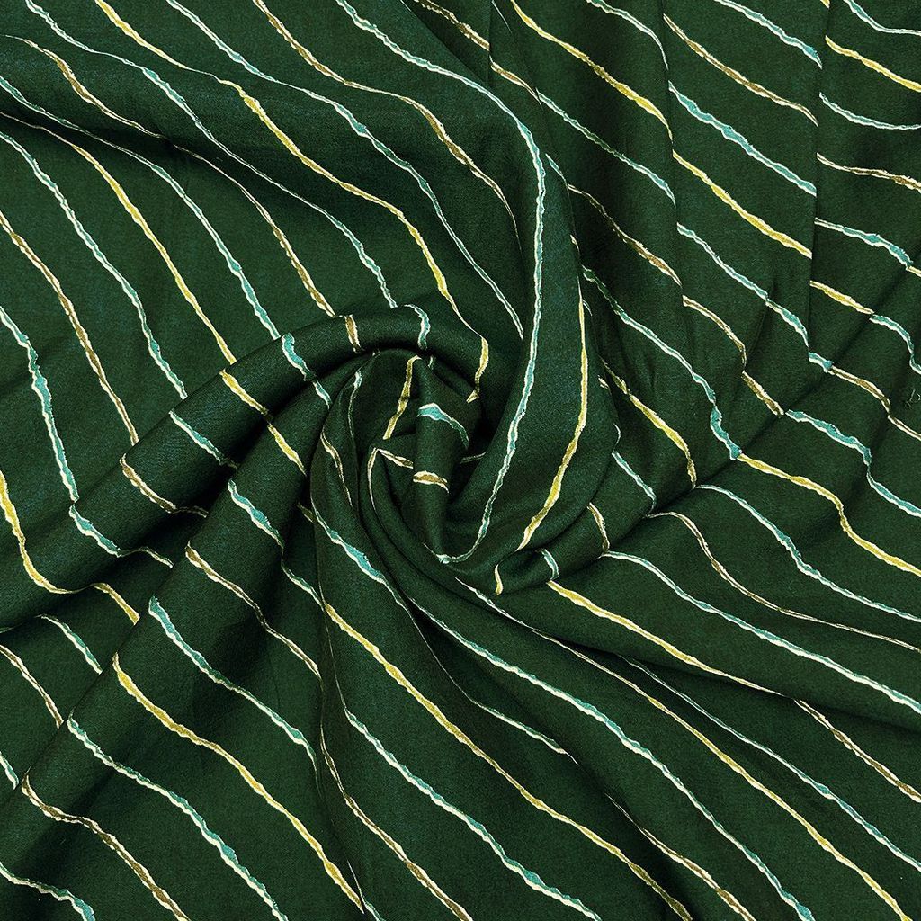 | Fabric Name | Dark Peacock Green Shade Leheriya Printed Muslin Fabric Material |
