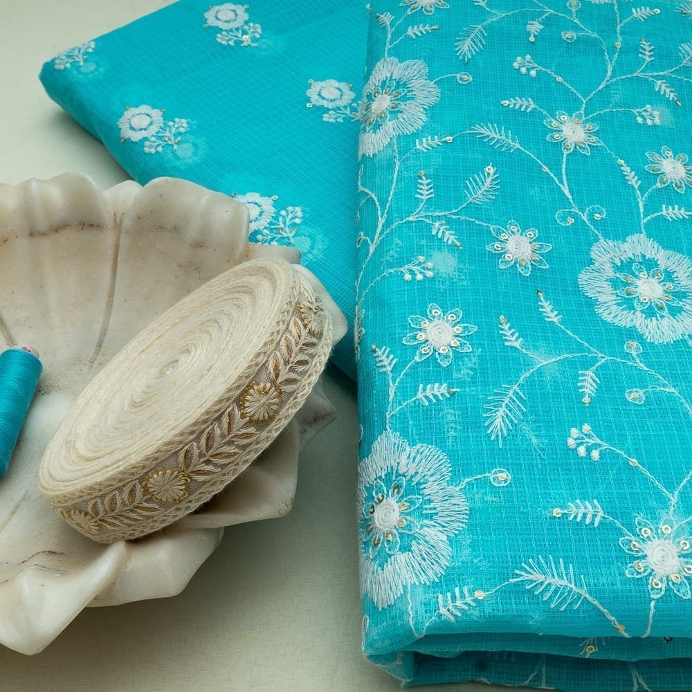 | Fabric Name | Firozi Color Kota Doria Embroidered DIY Set |
