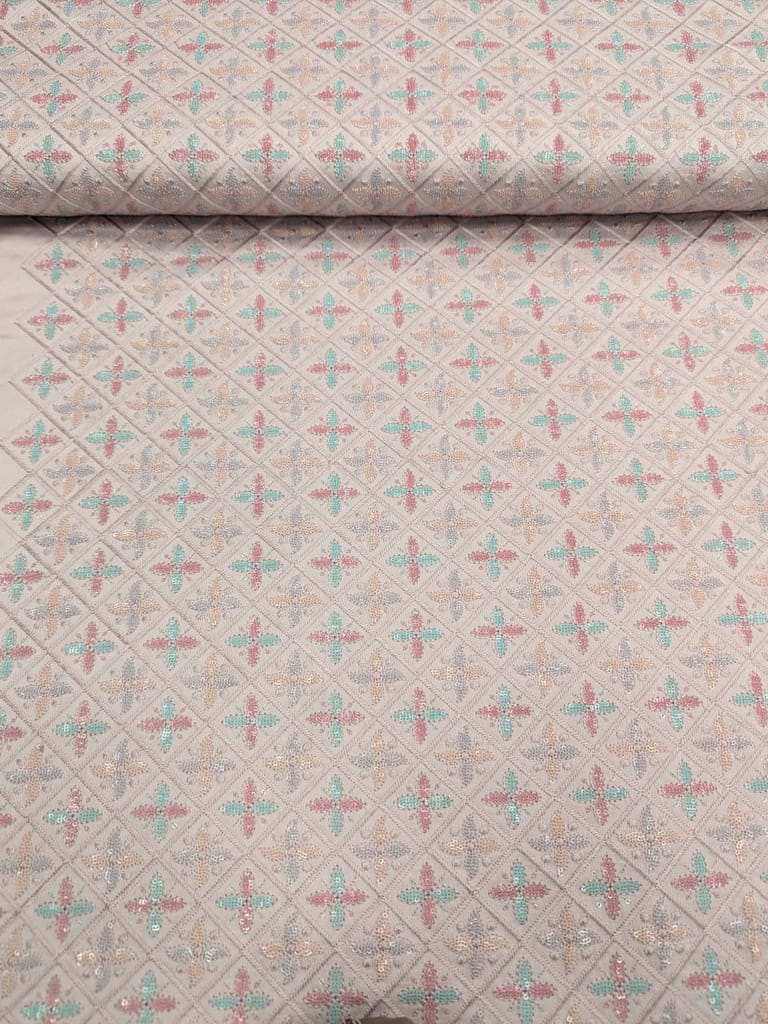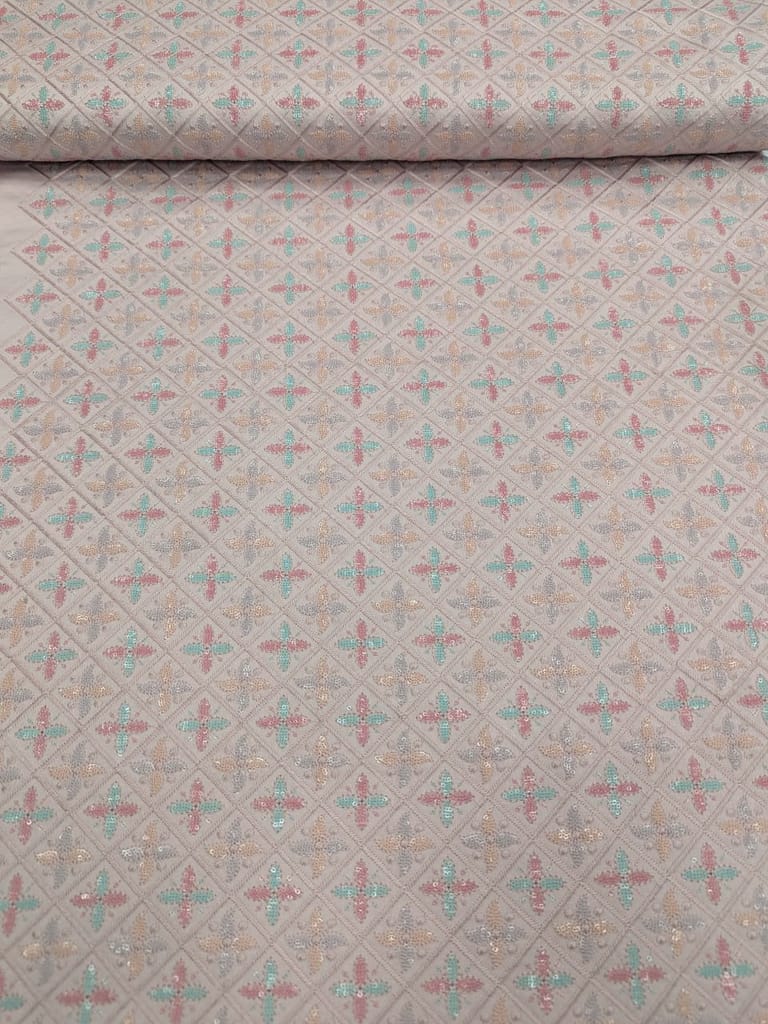 | Fabric Name | Dusty pink fabric with multi colour embroidery |