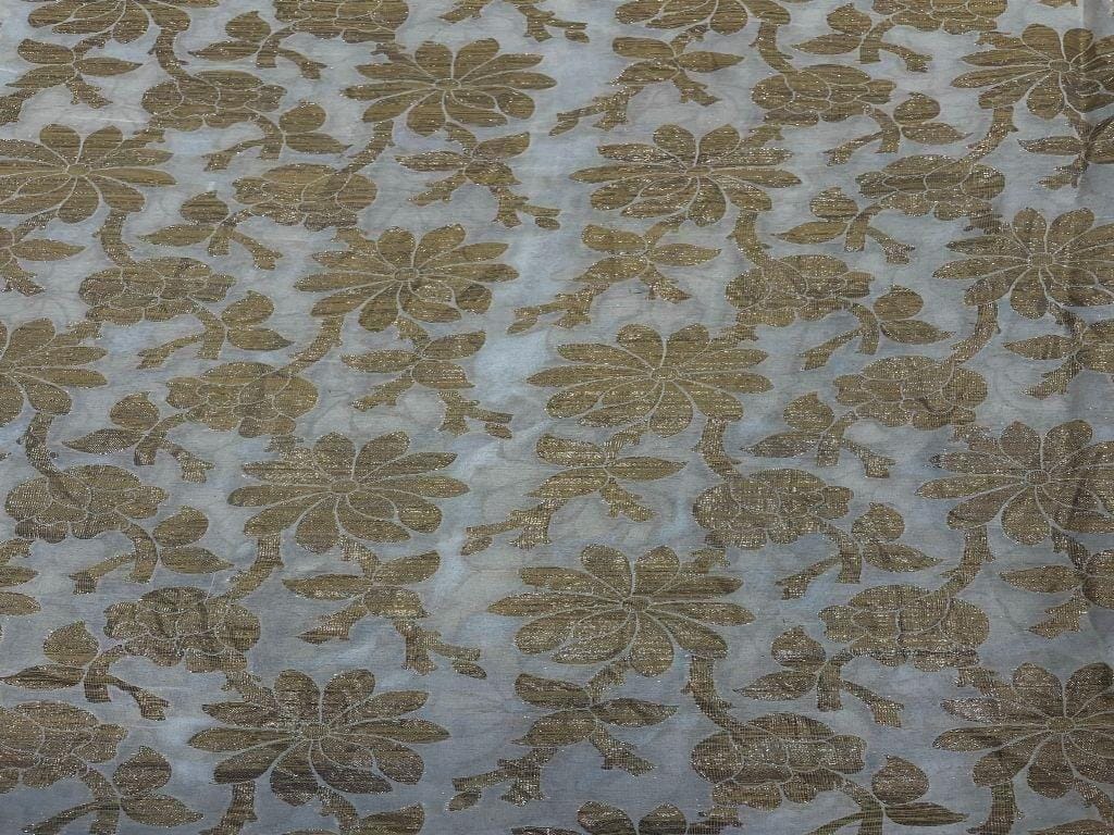 Dyeable Banarasi Semi Georgette White Golden Floral 4 Width 44 Inch / 112 Cm SKU:K1104