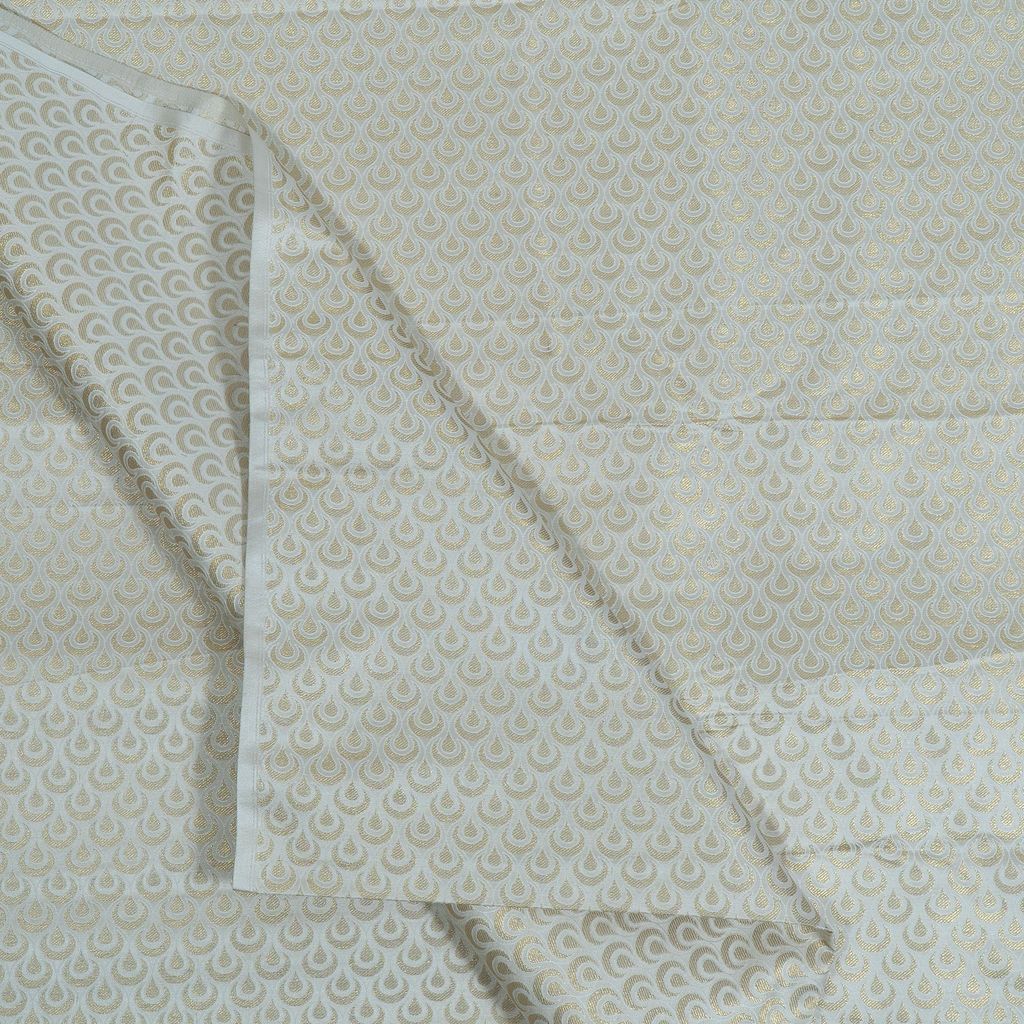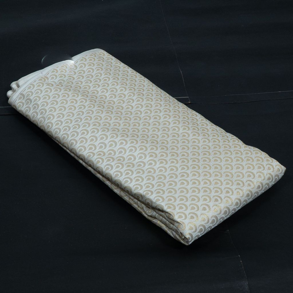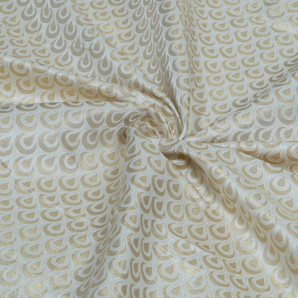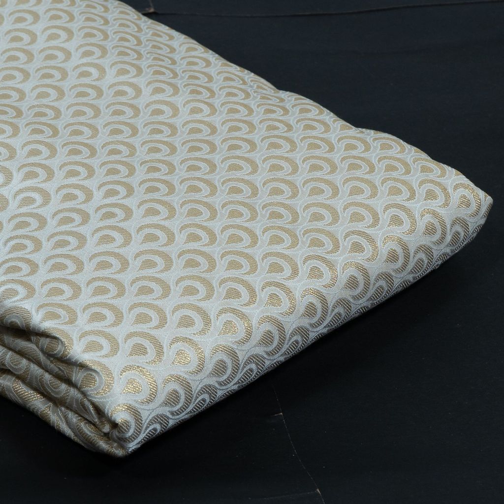 Introduce luxury and craftsmanship to your collection with this exquisite 160 GSM Dyeable Brocade Fabric, featuring a refined golden zari half-moon (semi-circular) woven motif throughout. Crafted with precision, this brocade offers a smooth, lustrous surface with a rich texture that highlights the intricate zari detailing. The fabric’s medium weight provides an elegant drape while maintaining structure—perfect for both traditional and contemporary silhouettes. Being fully dyeable, it allows designers and boutiques to customize the fabric in any shade while preserving the brilliance of the gold zari weave.