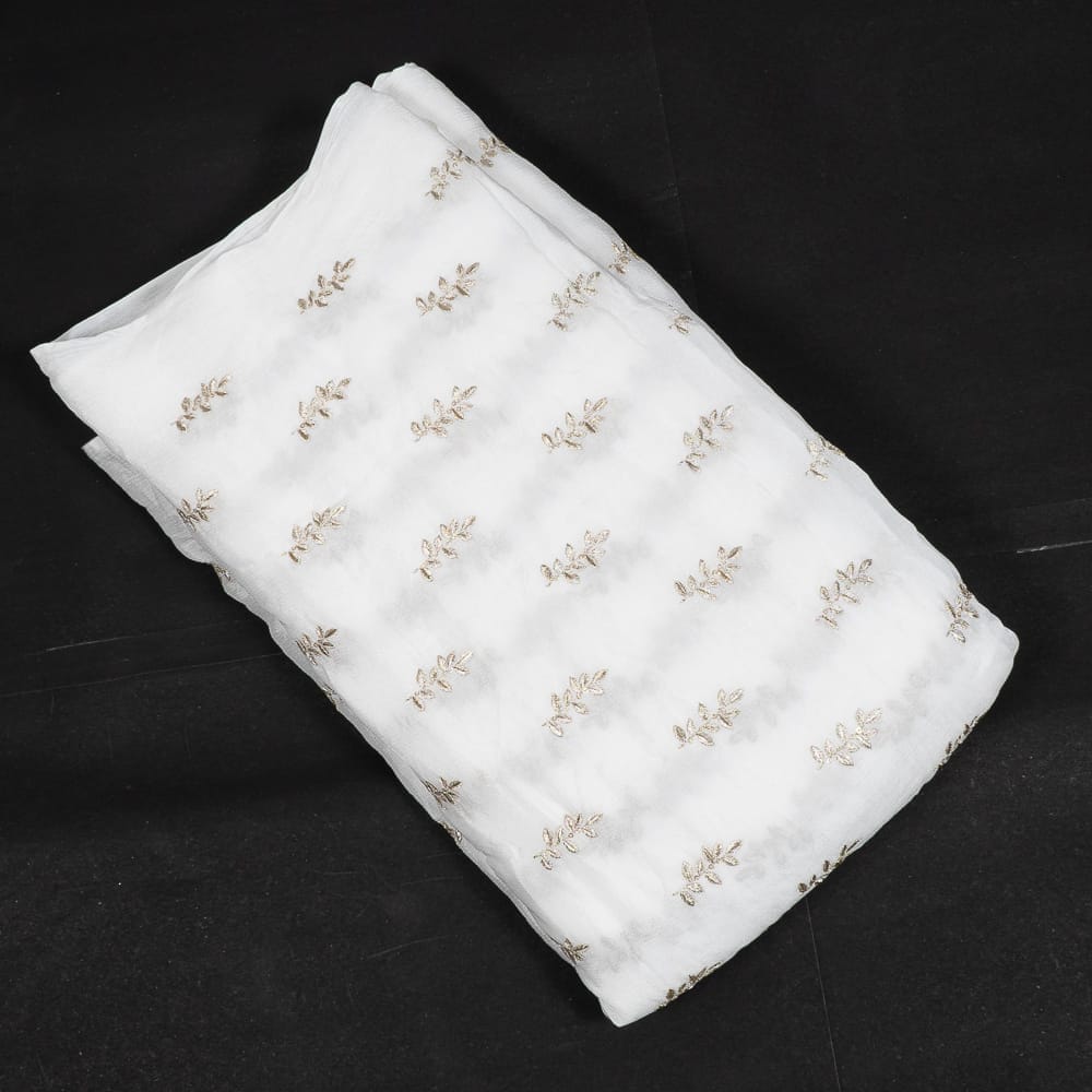 Experience timeless elegance with our dyeable Chinon embroidered fabric. Crafted to perfection, Chinon fabric offers a luxurious drape and subtle sheen. Adorned with exquisite embroidery, it adds a touch of sophistication to any attire. Its dyeable nature allows for personalized creations, ensuring each piece is as unique as you are, making a statement with every wear.SKU:10024596 D.No. AO3325