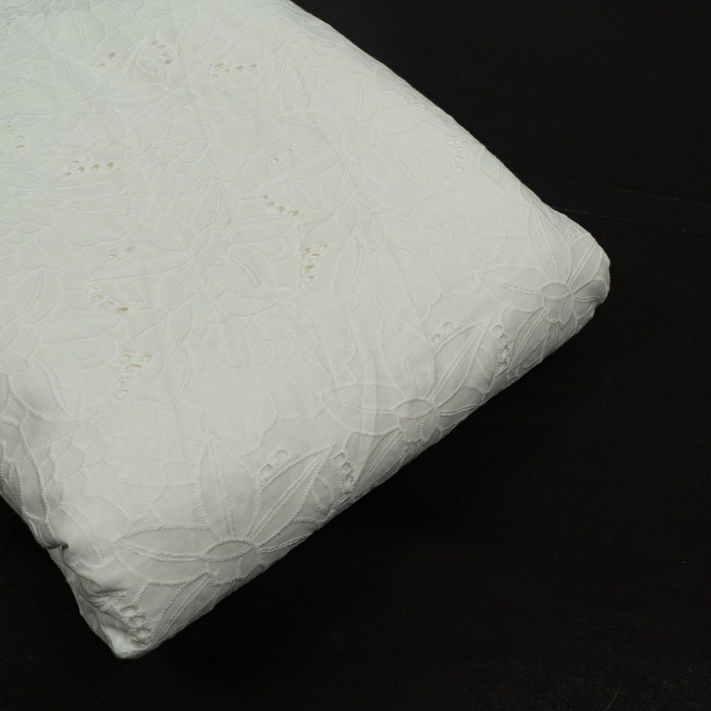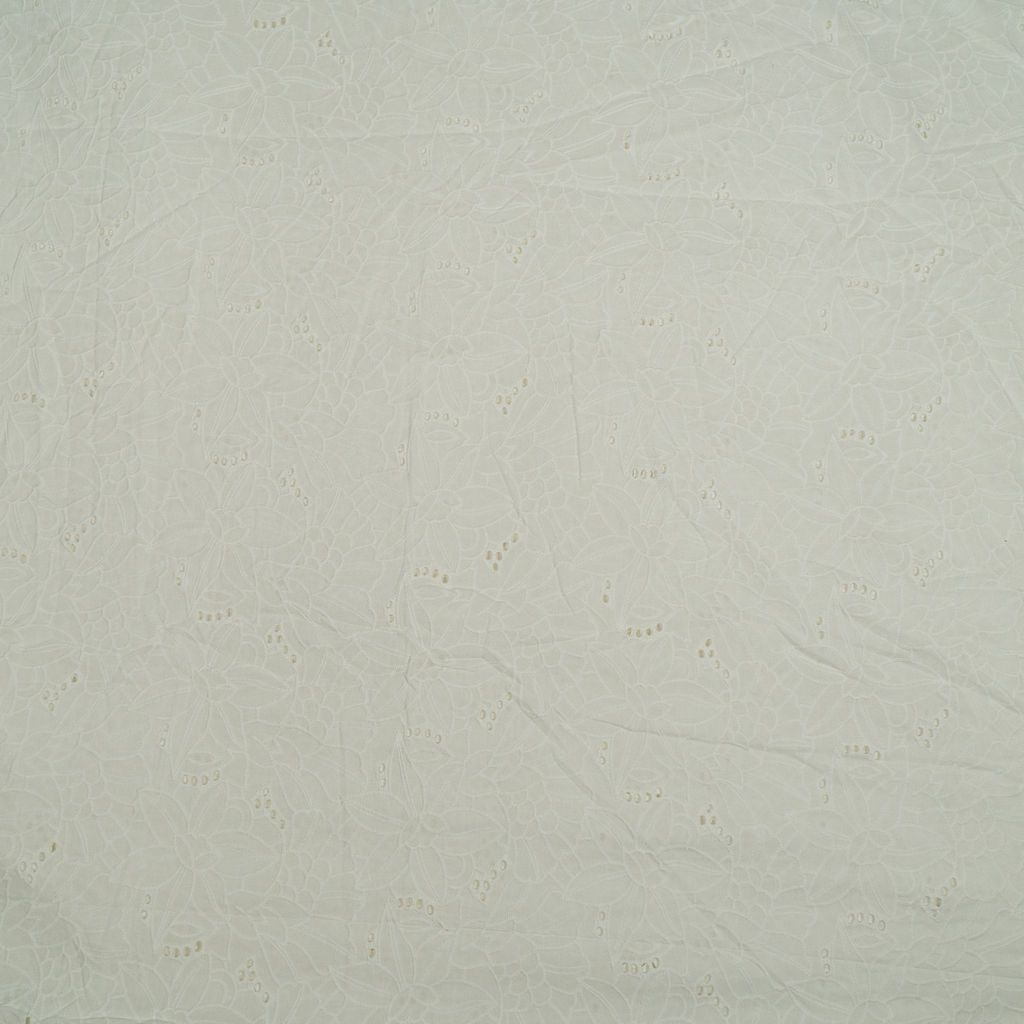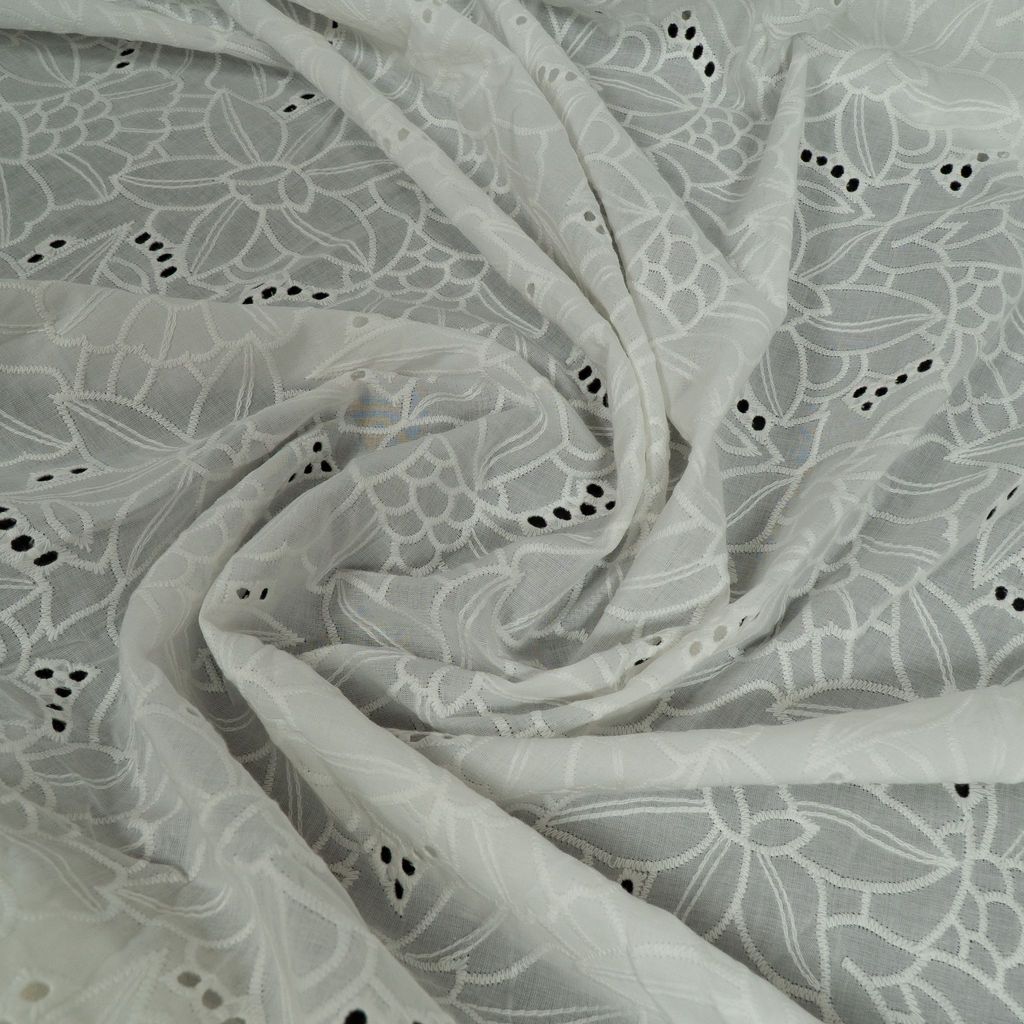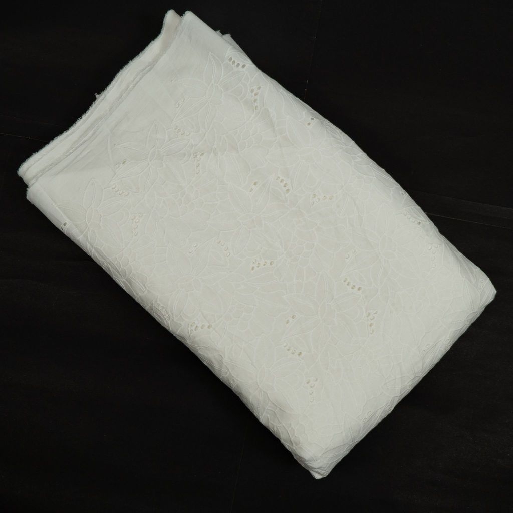 Dyeable Cotton Chikan / Hakoba / Schiffli embroidered fabric presents a versatile canvas for personalized creativity. Its breathable cotton base is adorned with delicate chikan embroidery, offering a classic and timeless aesthetic. Ready to be dyed in a spectrum of colours, it invites endless possibilities for custom designs, making it perfect for fashion, home decor, and crafts.SKU: 100241084 D.No. 1608 This Cotton Schiffli Embroidered Fabric from FabCouture showcases intricate Chikankari-inspired embroidery, making it ideal for ethnic wear, kurtis, festive blouses, or elegant dresses. Perfect for designers and boutique creators looking for lightweight and stylish fabric.
