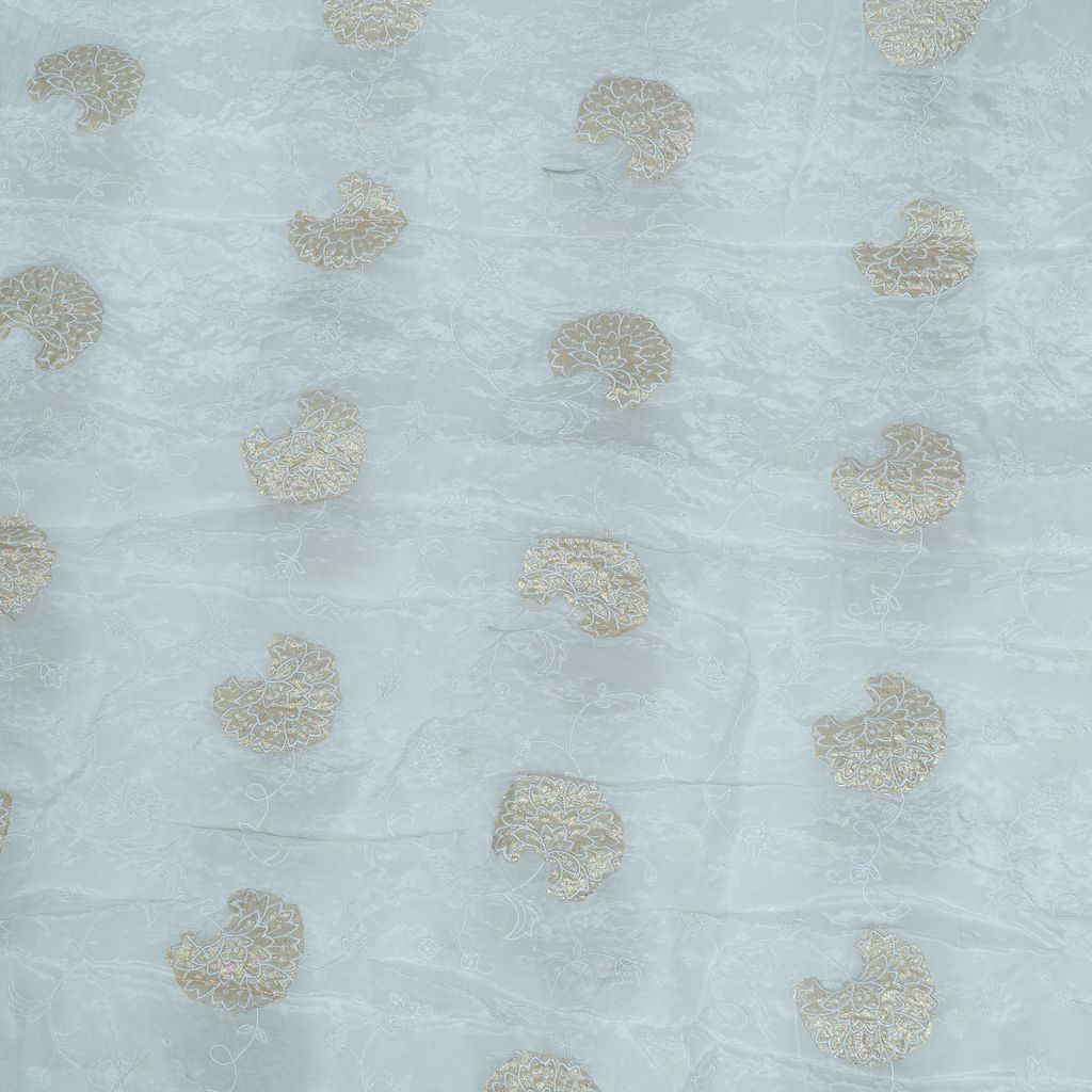 The fabric is delicately adorned with beautiful, scattered butis (small motifs) featuring elegant embroidery, providing a classic and sophisticated look. Being dyeable, this fabric allows for complete color customization—choose a vibrant jewel tone for festivals or a muted pastel for daytime events. It's the perfect canvas for creating customized sarees, suits, or lehengas with a touch of traditional sparkle.