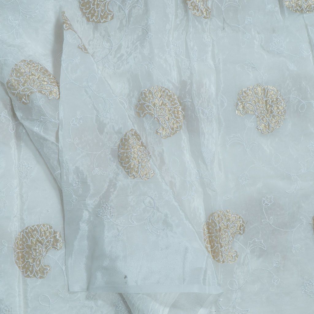 Fabric Name: Dyeable Dola Silk Buti Embroidered Fabric