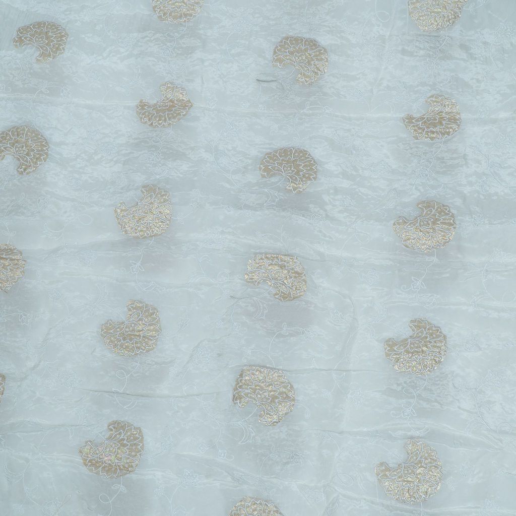 Discover the subtle grandeur of our Dyeable Dola Silk Buti Embroidered Fabric. This silk-rich blend offers the smooth, flowing drape of premium Dola Silk, making it a luxurious choice for any special occasion.